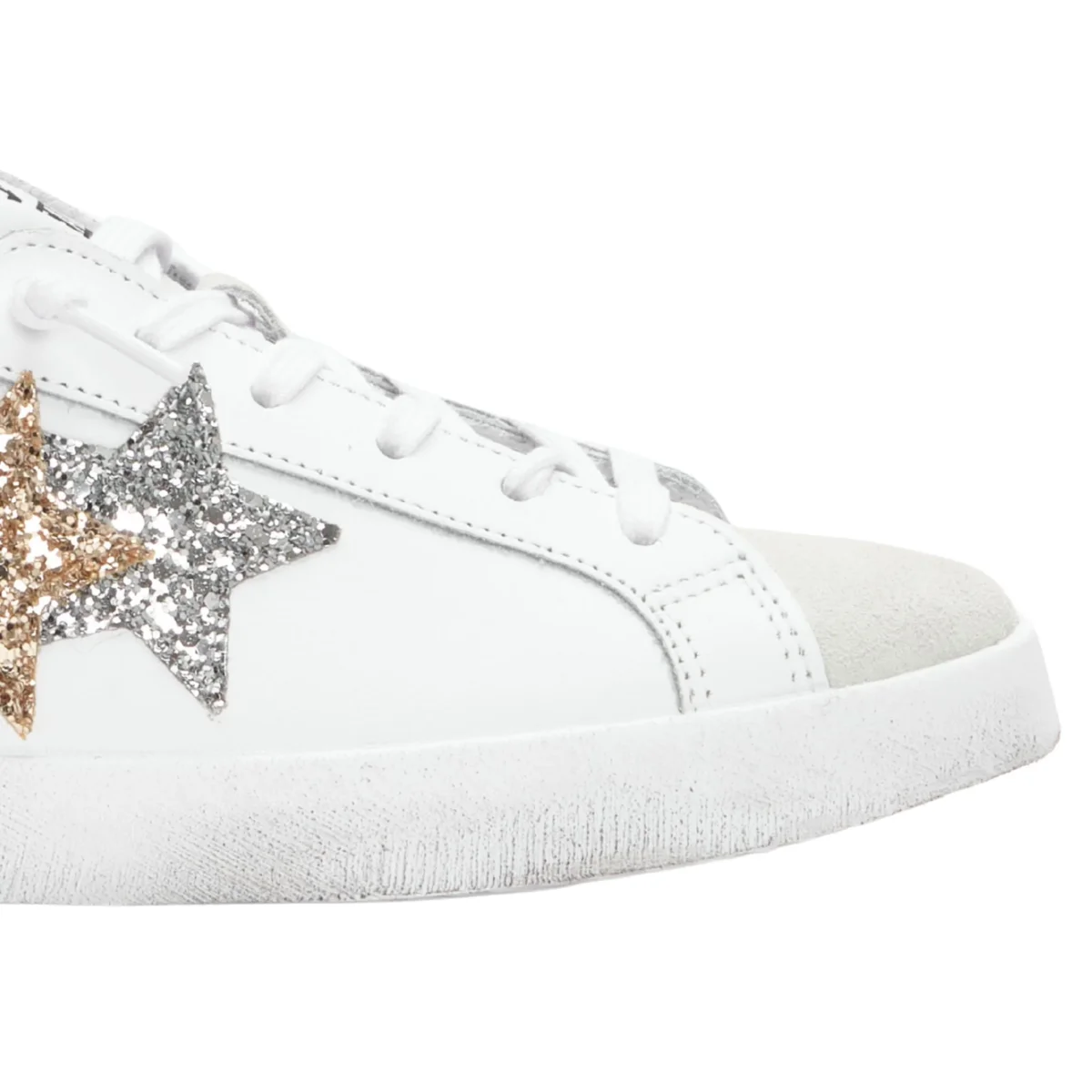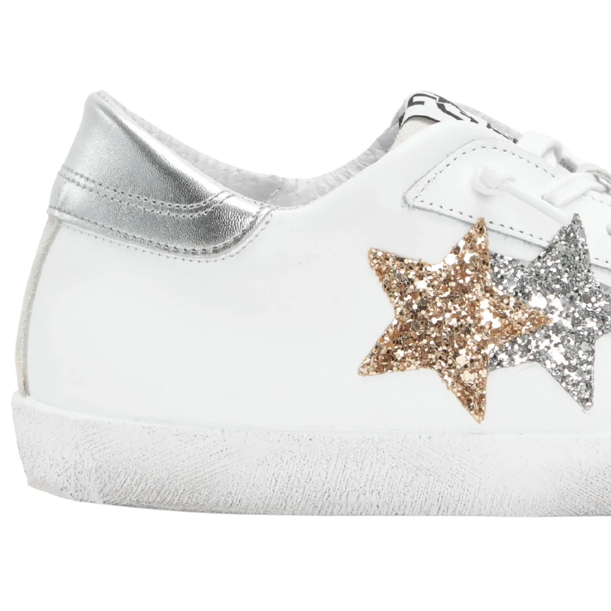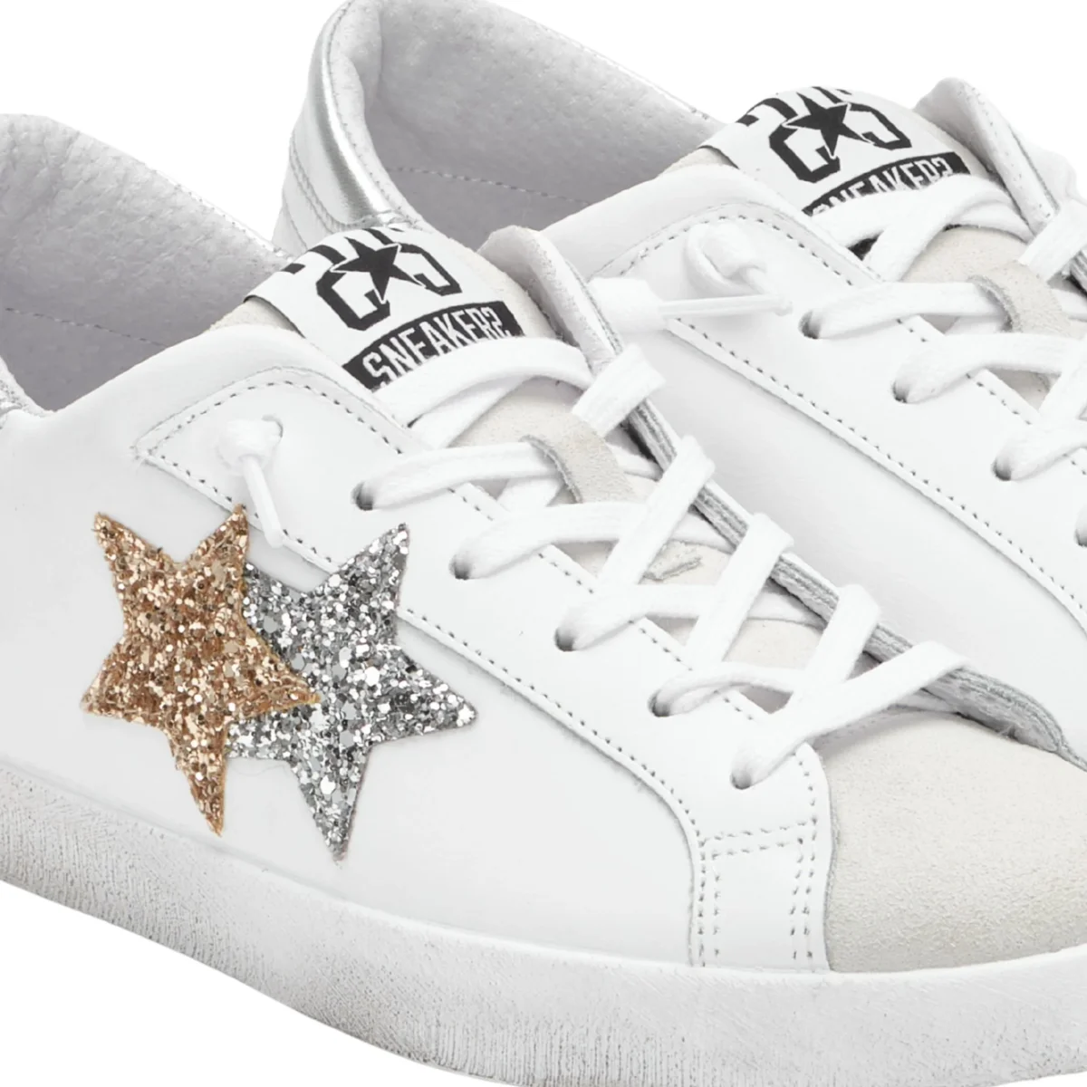 2Star Scarpe Sneakers Made in Italy artigianali PRIME STAR Pelle donna Bianco oro argento