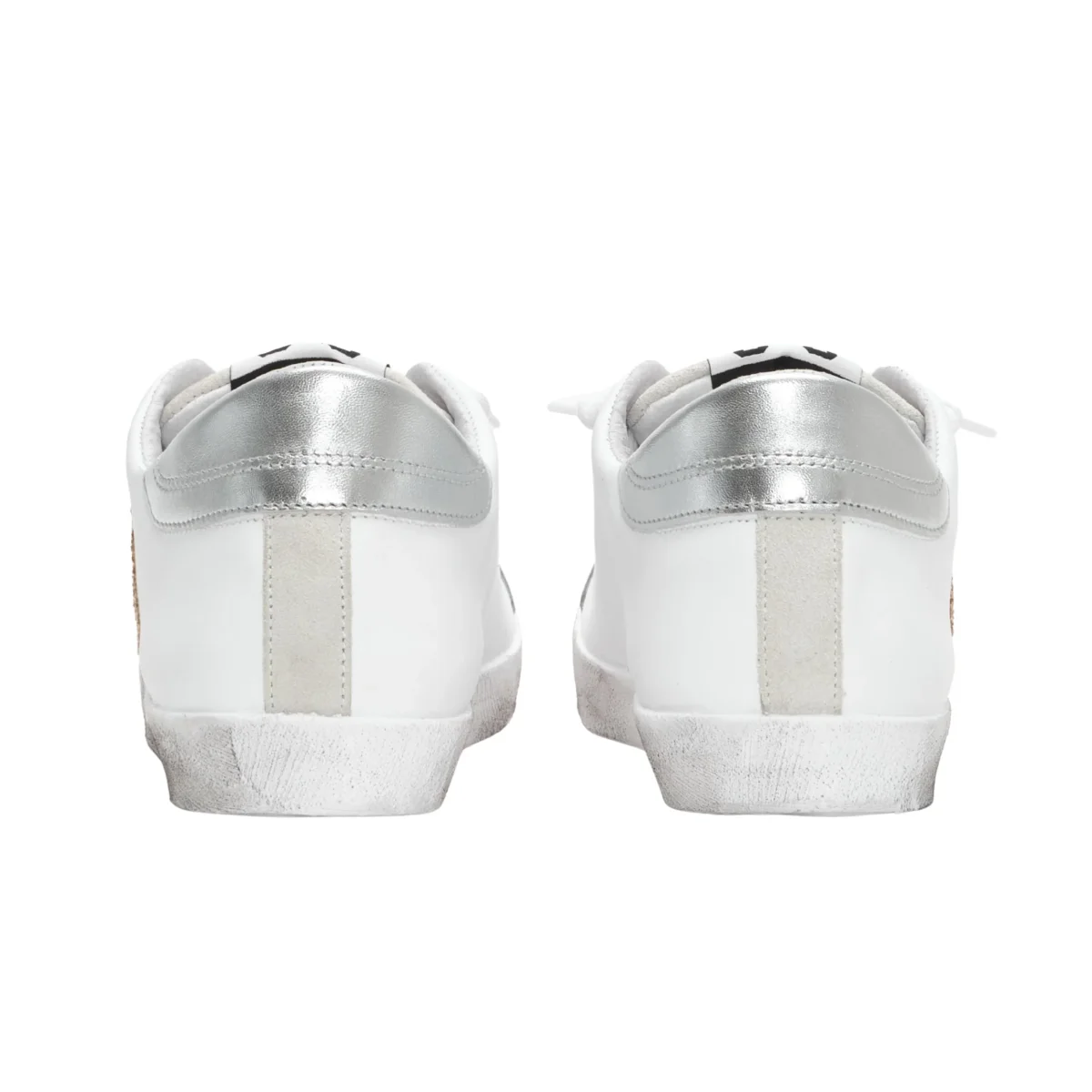 Scarpa bassa con dettaglio laterale color argento, backtab posteriore in colore a contrasto; calzatura interamente trattata con effetto used.