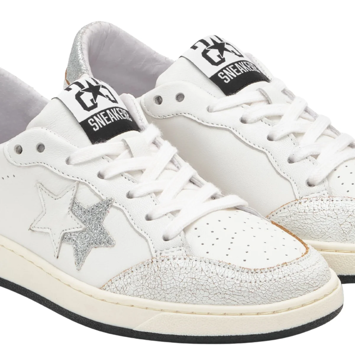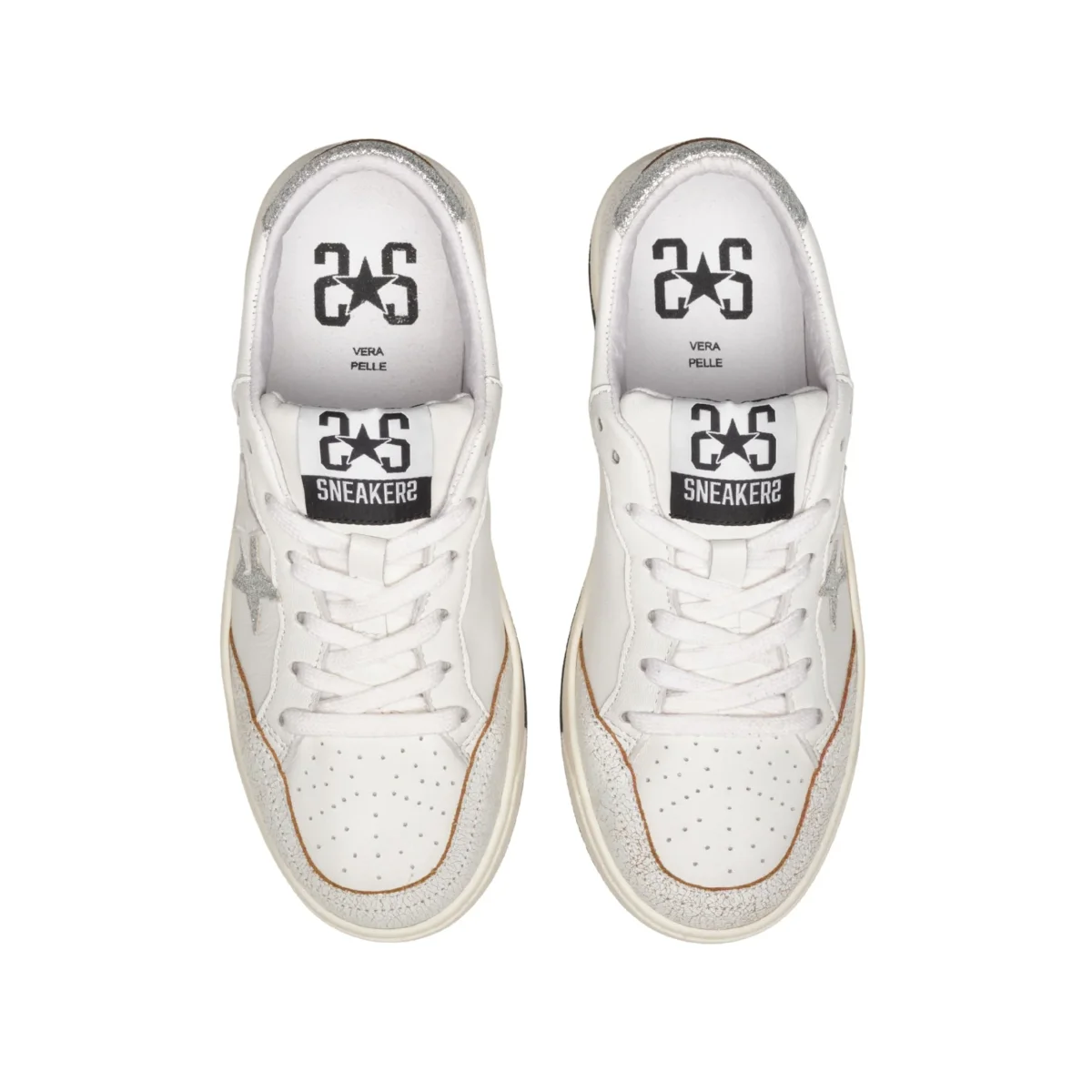 2Star Scarpe Sneakers Made in Italy artigianali Week Star Pelle Bianco Argento