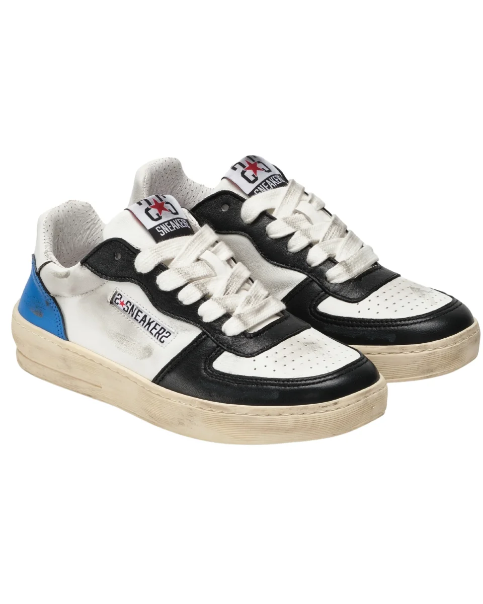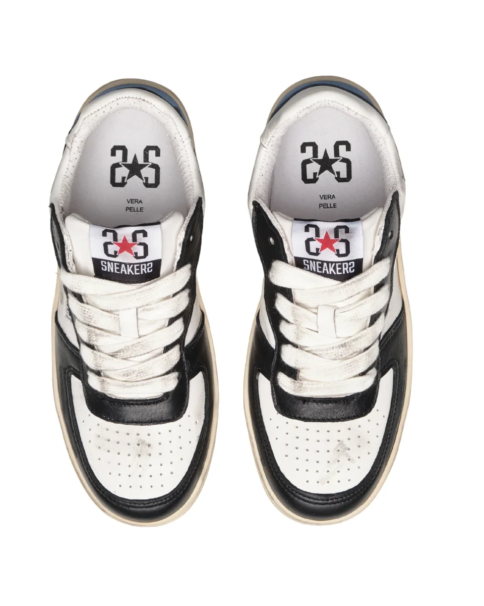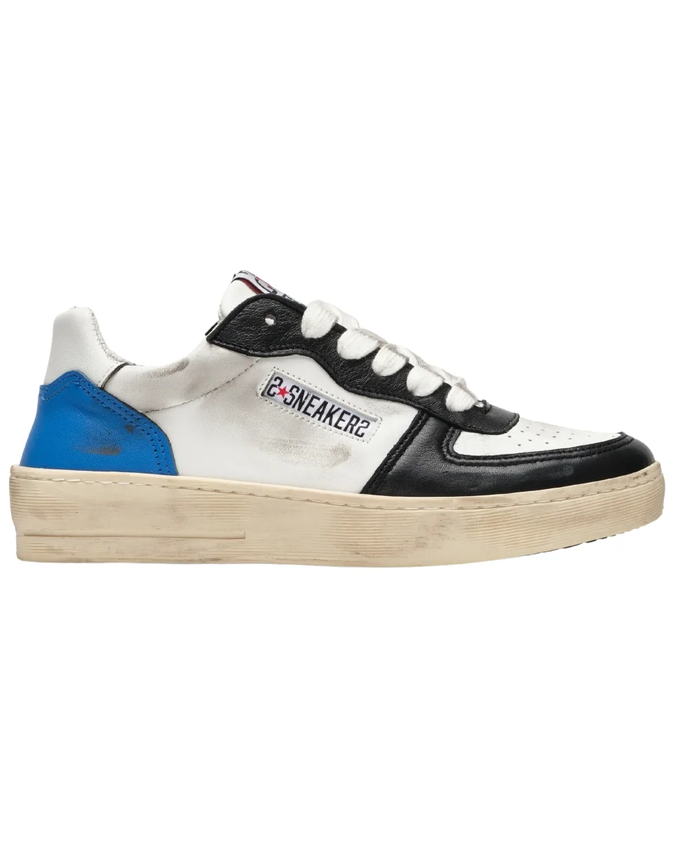 2Star Sneakers Padel in Pelle Bianca Dettagli Crosta Ghiaccio Neri