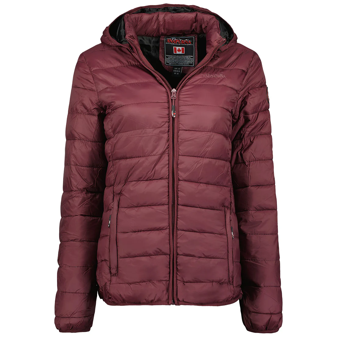 PIUMINO ANAPURNA DA DONNA CORTO, MANICA LUNGA. GIUBBOTTO IMBOTTITO E TRAPUNTATO.CAPPUCCIO STACCABILE. BADGE IN PVC SULLA MANICA. APERTURA CON ZIP FRONTALE E TASCHE.
