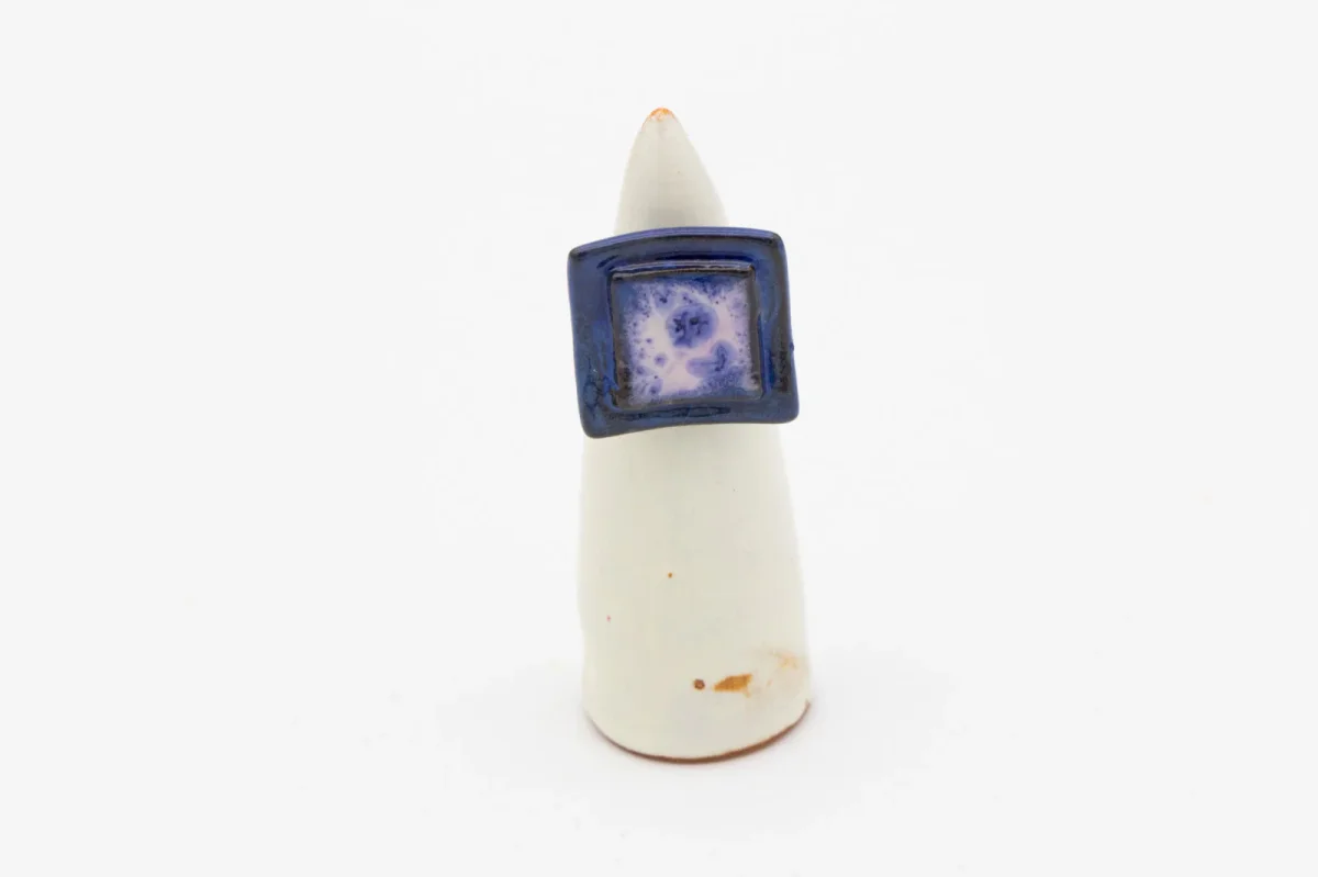 Anello in argilla regolabile fatto a mano. Anello particolare in ceramica quadrato color bu e bianco. Poiché i prodotti sono realizzati a mano, le loro dimensioni sono indicative e possono differire leggermente da quelle menzionate.