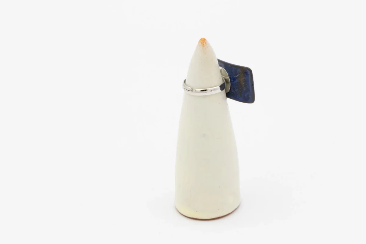 Anello in argilla regolabile fatto a mano. Anello in ceramica rettangolare color blu e arancione. Poiché i prodotti sono realizzati a mano, le loro dimensioni sono indicative e possono differire leggermente da quelle menzionate.