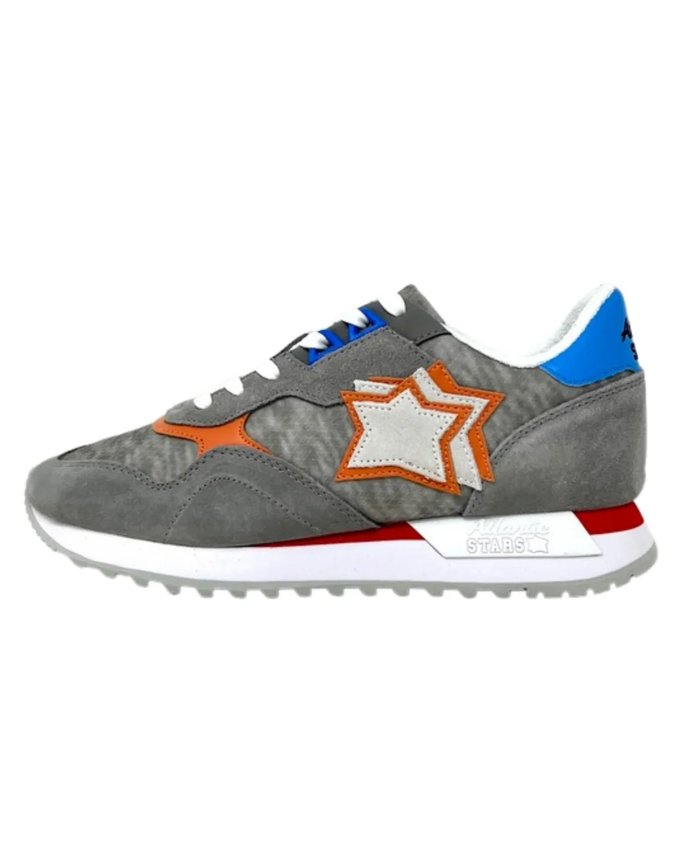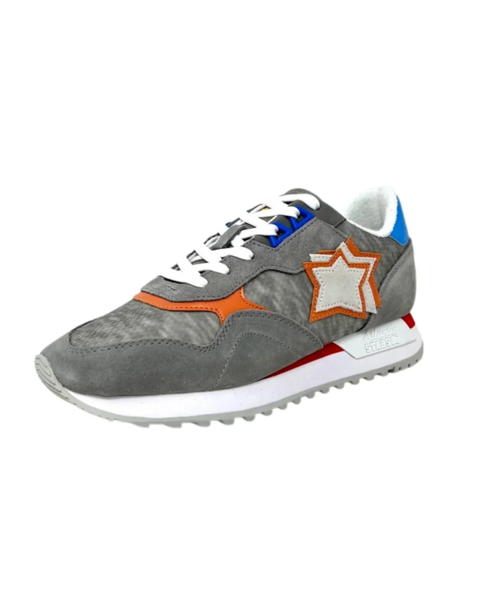 Scarpe Atlantic Stars uomo in pelle e tessuto modello DRACOC con linguetta logata, classico elemento ‘Stars’ sul fianco e chiusura con lacci, plantare estraibile.