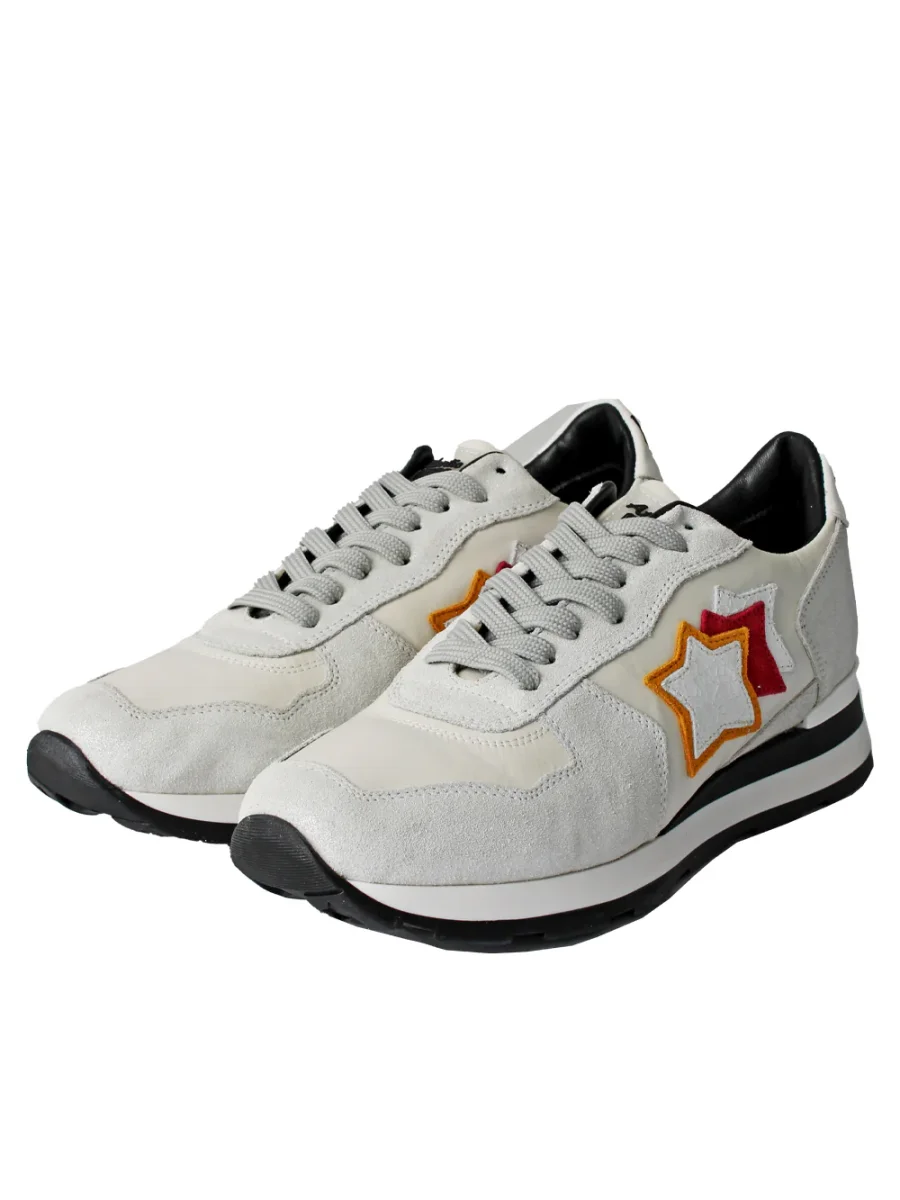 Scarpe realizzate in tessuto e strass, con stelle applicate e linguetta con etichetta legata. Scuola running in gomma, rigorosamente Made in Italy.
