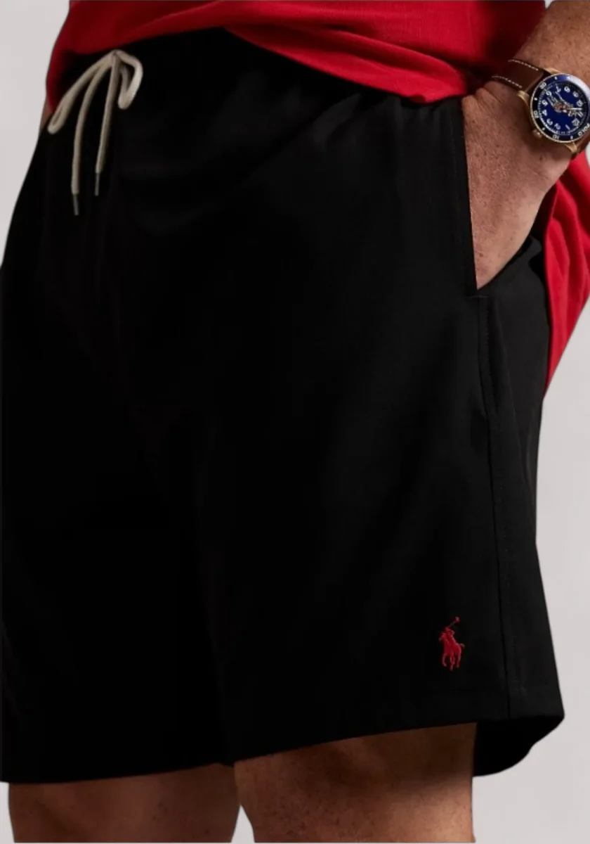 - Tasche laterali all’americana. Tasca con bottone sul lato posteriore destro. Etichetta “Polo Ralph Lauren Swimwear” sulla tasca posteriore.
