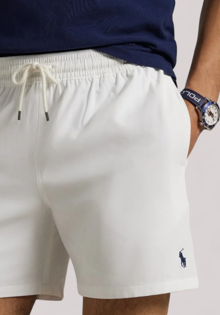 - Tasche laterali all’americana. Tasca con bottone sul lato posteriore destro. Etichetta “Polo Ralph Lauren Swimwear” sulla tasca posteriore.
