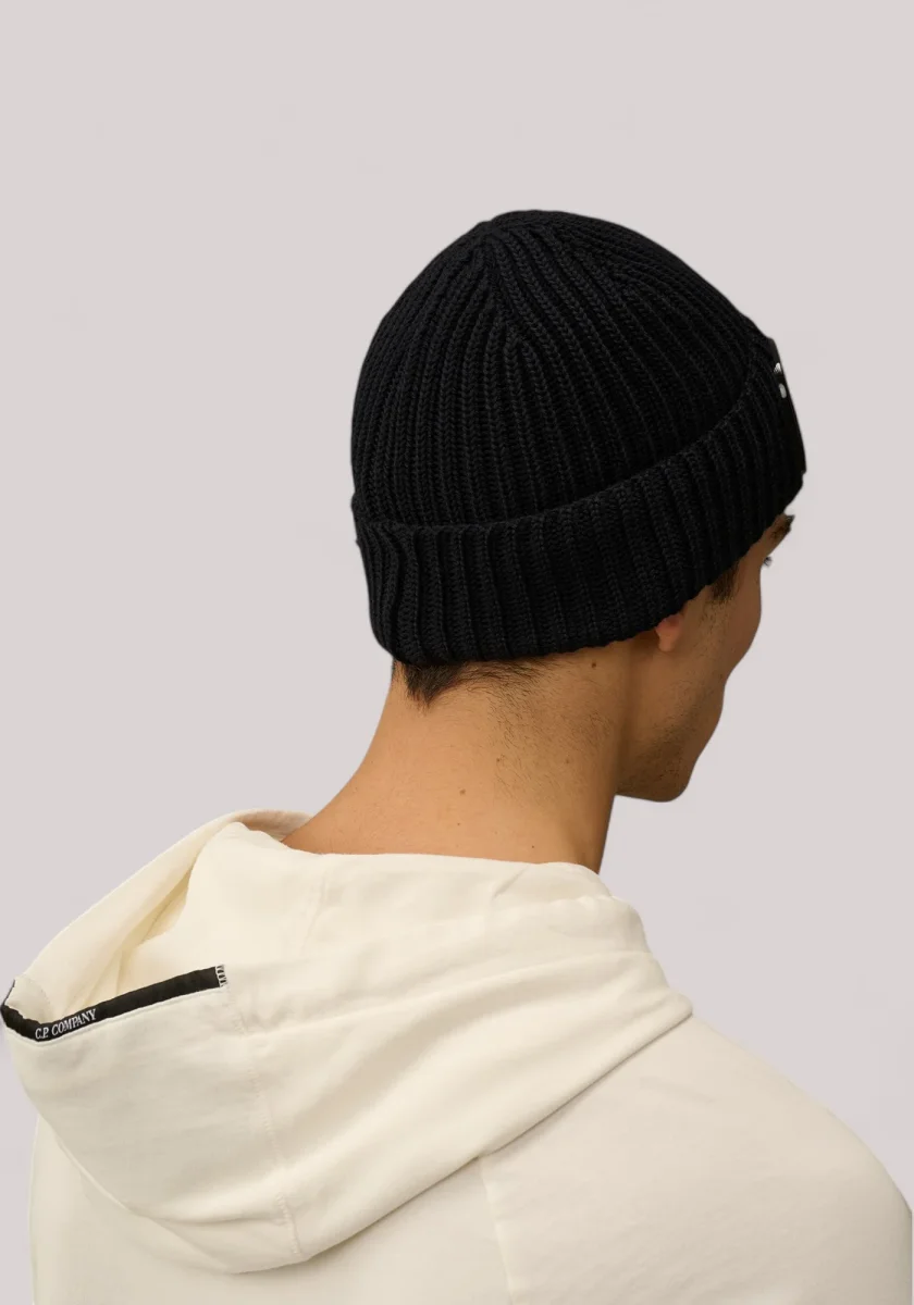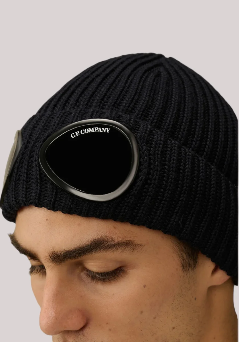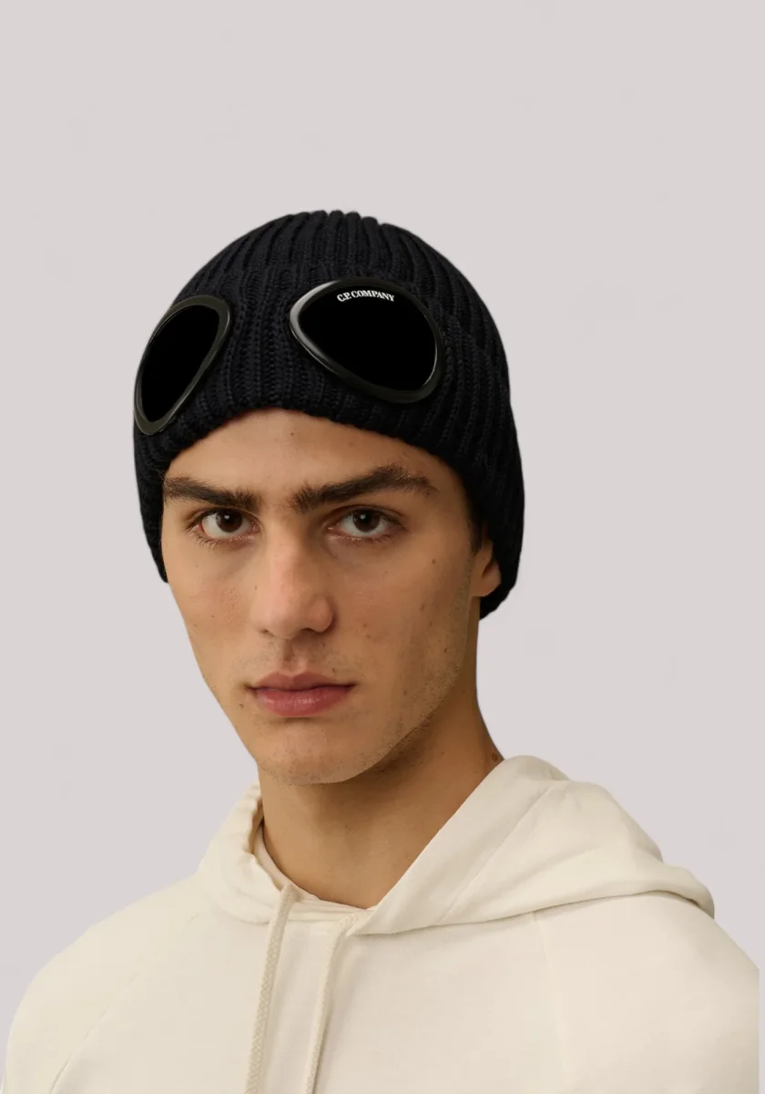 Beanie con lenti Goggle realizzato in lana merino extra fine.