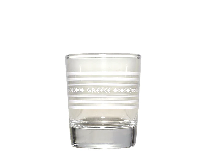 Uno shottino in vetro con stampa serigrafica bianca. Un’ottima scelta per servire grappe o liquori come Raki e Ouzo. Per un servizio da liquore completo, oltre al bicchiere da liquore Ancient Motifs, potrebbe piacerti anche la bottiglia Ancient Motifs di vetro abbinata.