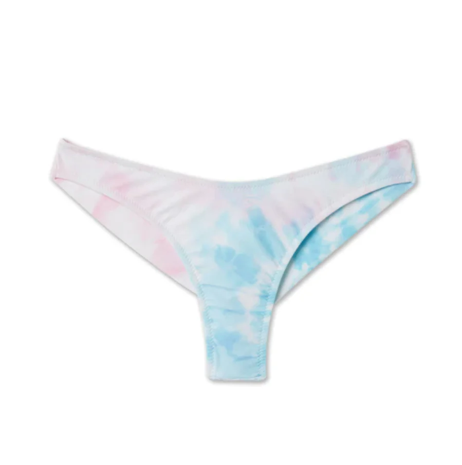 Bikini fascia a V con slip fianco coulotte in tessuto Lycra opaca a fantasia. Capo dotato di imbottitura interna estraibile e ricami in cotone su slip, realizzato con stampa all-over.