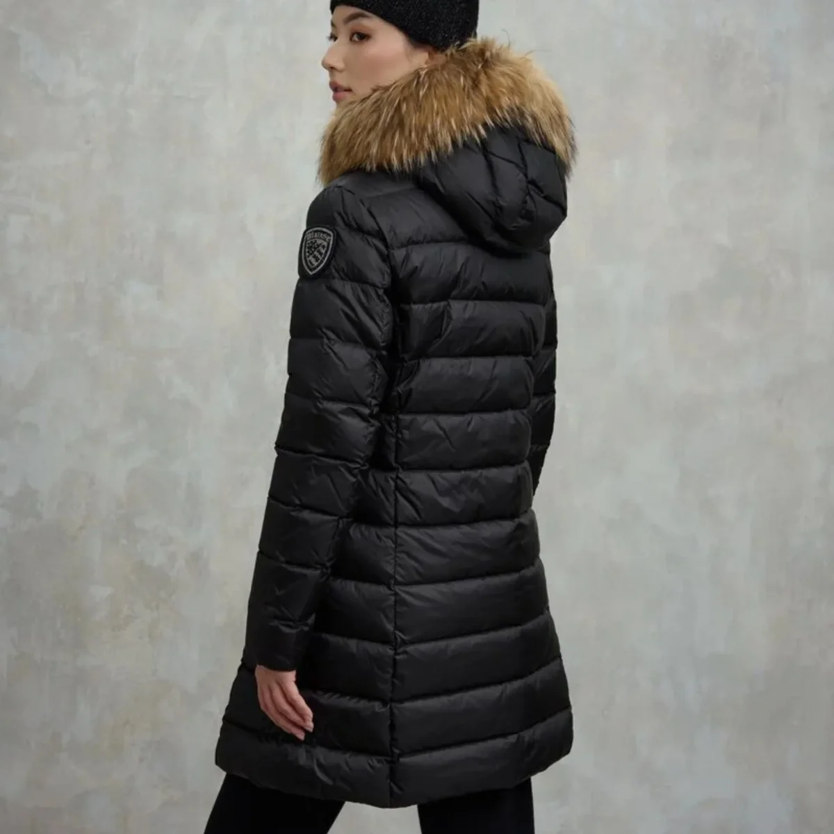 Blauer Piumino Lungo Imbottito Kristin Nero Interno Beige Donna con Cappuccio Fisso