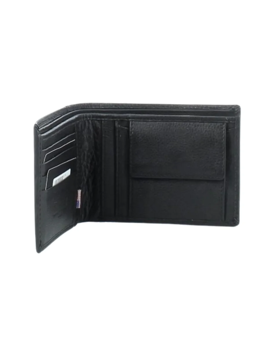 Portafoglio in pelle. Slot per carte di credito, banconote e documenti. Logo frontale tono su tono.