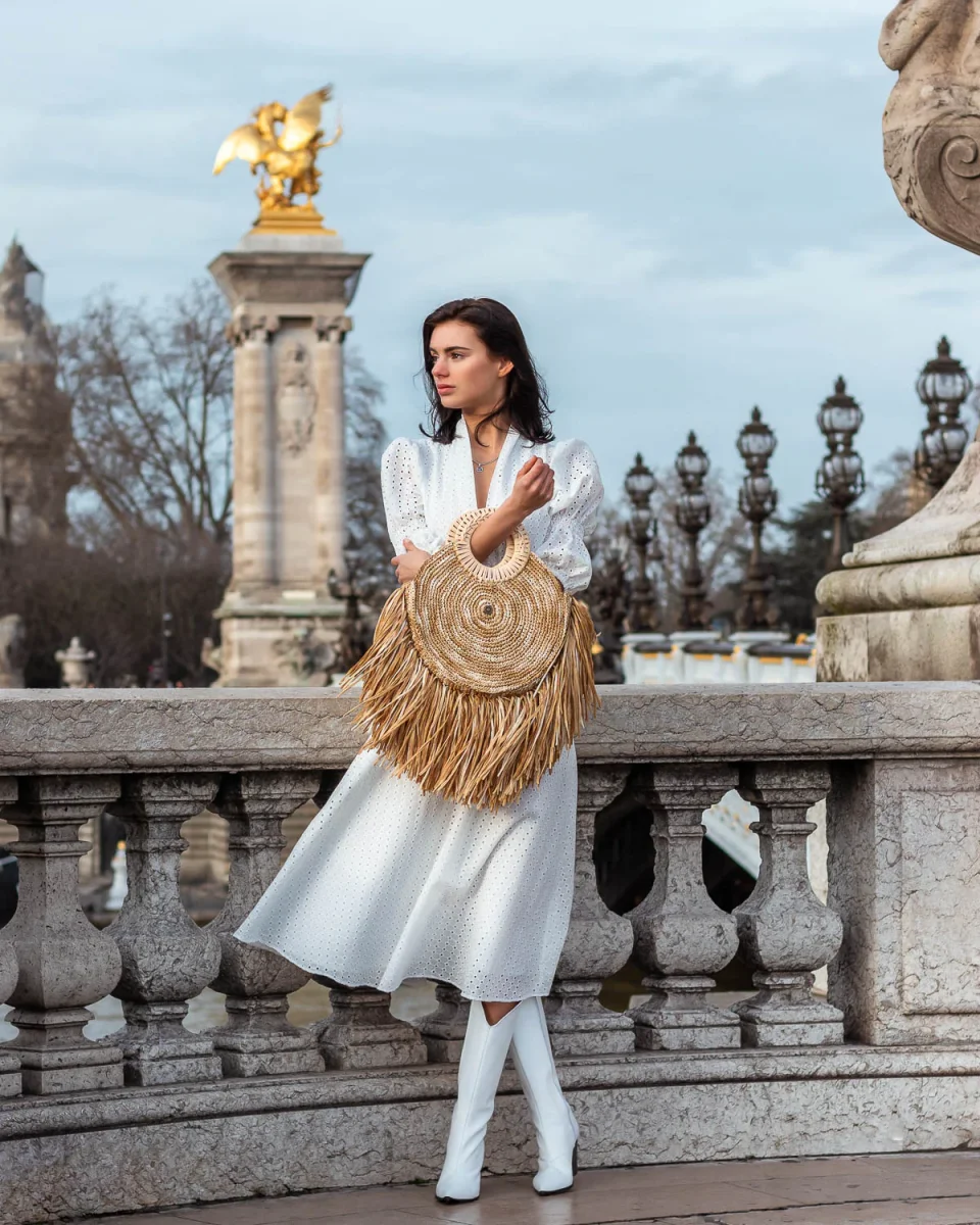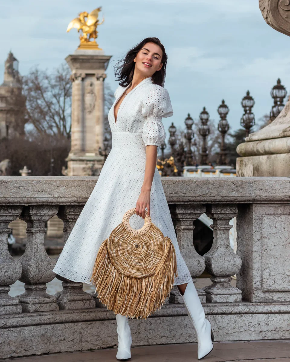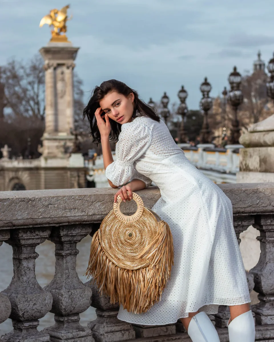 Un’esclusiva borsa dal design sorprendente, a forma rotonda con lunghe frange, questa borsa tote non passerà certamente inosservata nel vostro look primaverile-estivo. La sagoma circolare è realizzata a mano con rafia intrecciata ed è completata da un paio di maniglie rotonde di paglia. Questa borsa rafia uncinetto diventerà un accessorio indispensabile per le vostre giornate, una borsa bohémien da abbinare ad abiti ampi e svolazzanti, dal carattere deciso e distintivo, sarà perfetta per le vostre avventure nelle isole greche! A causa della natura artigianale del prodotto, nessun altra borsa può essere identica a quella che possiedi e possono verificarsi piccole variazioni nelle dimensioni.