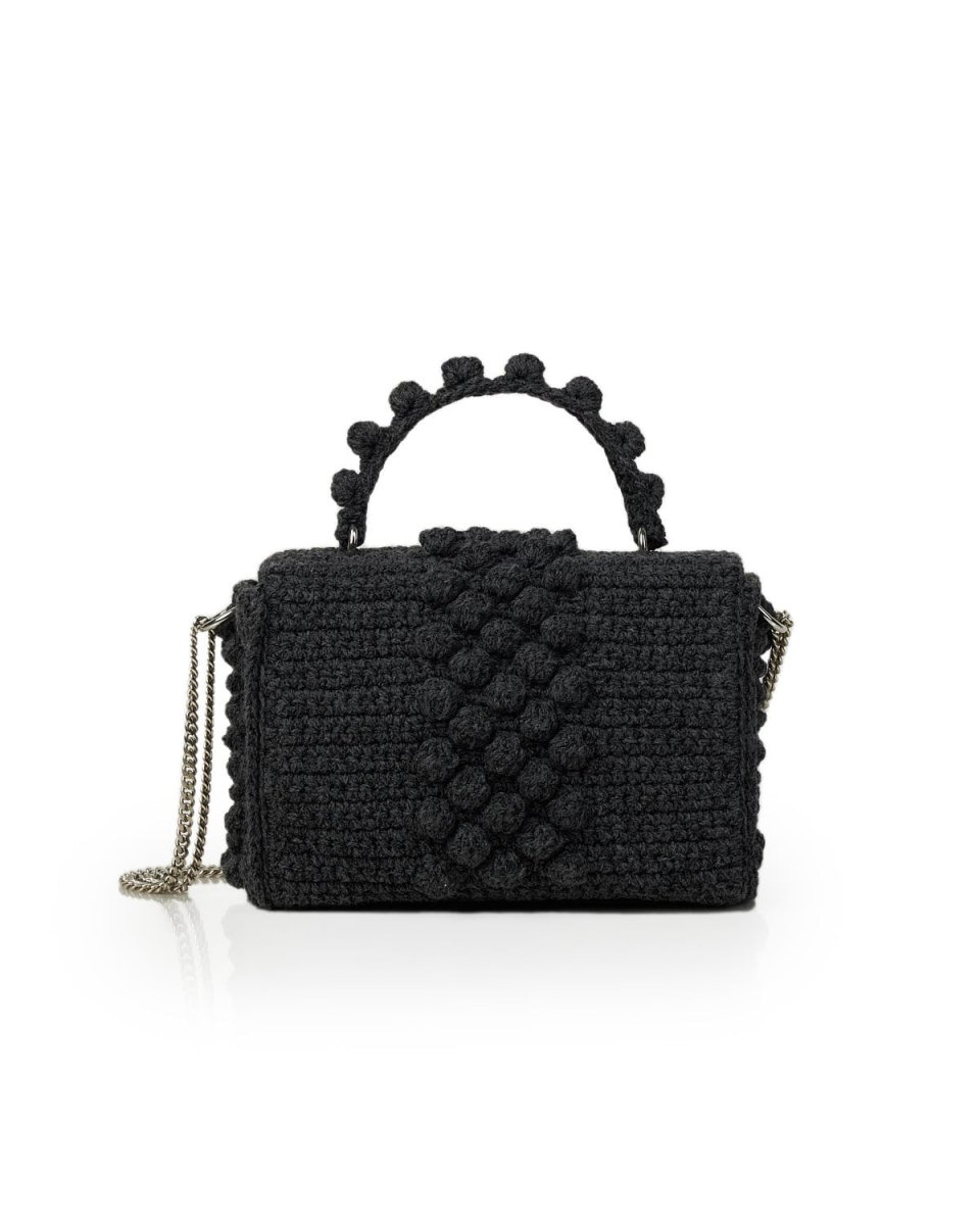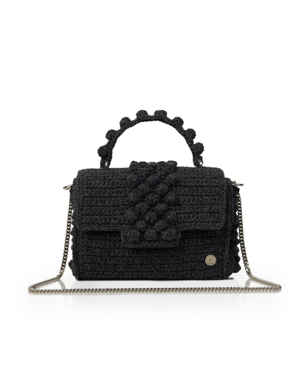 Realizzata artigianalmente con filati di prima qualità , la borsa a spalla Annabelle all’uncinetto presenta una patta all’uncinetto decorata con il nostro iconico motivo a bolle e una catena metallica staccabile.