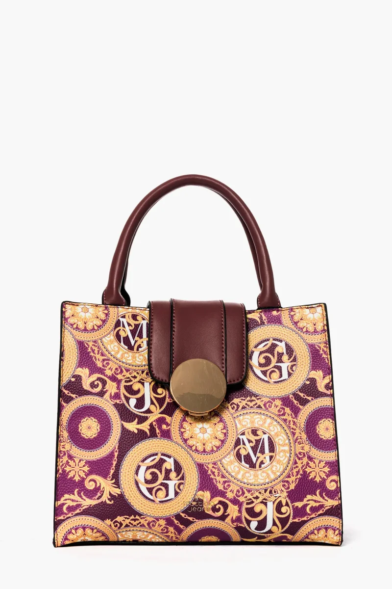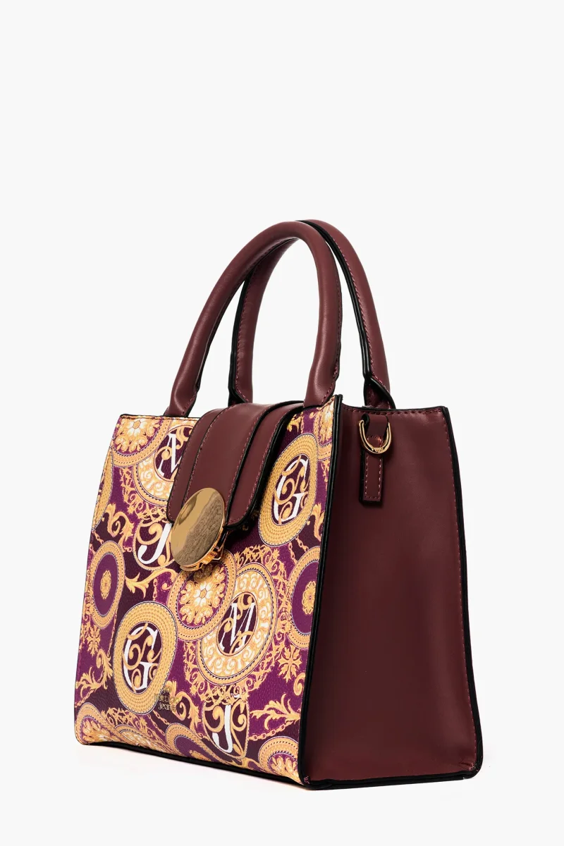 Borsa in ecopelle bordeaux, con manico, e tracolla regolabile ed estraibile.