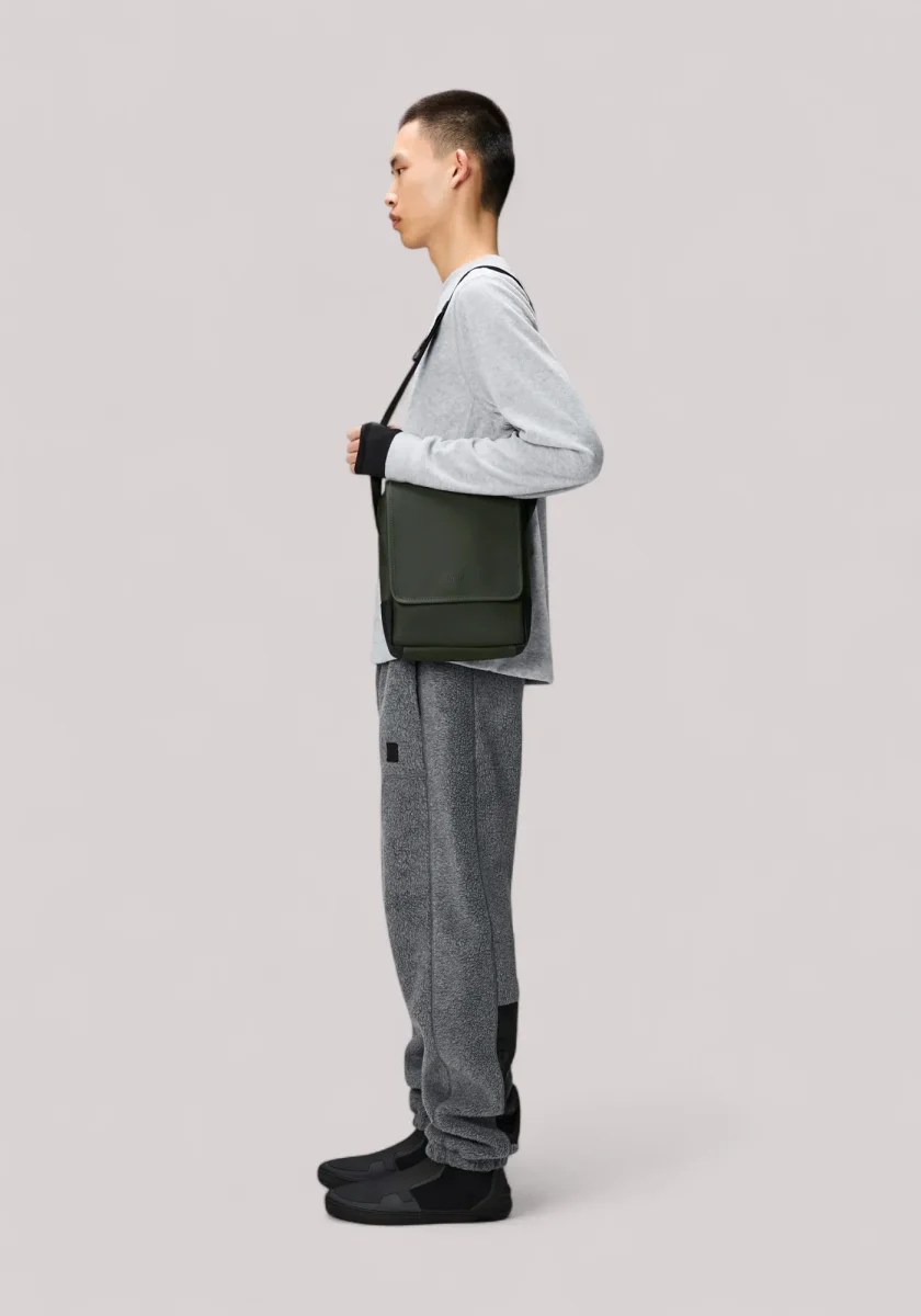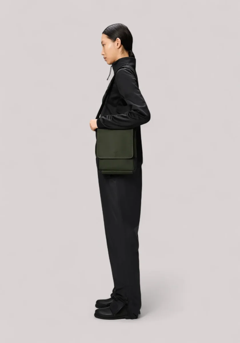 Perfetta per chi è sempre in movimento, ha un profilo rettangolare elegante che aderisce al corpo, ed è dotata di una comoda tracolla in tessuto jacquard con logo Rains.