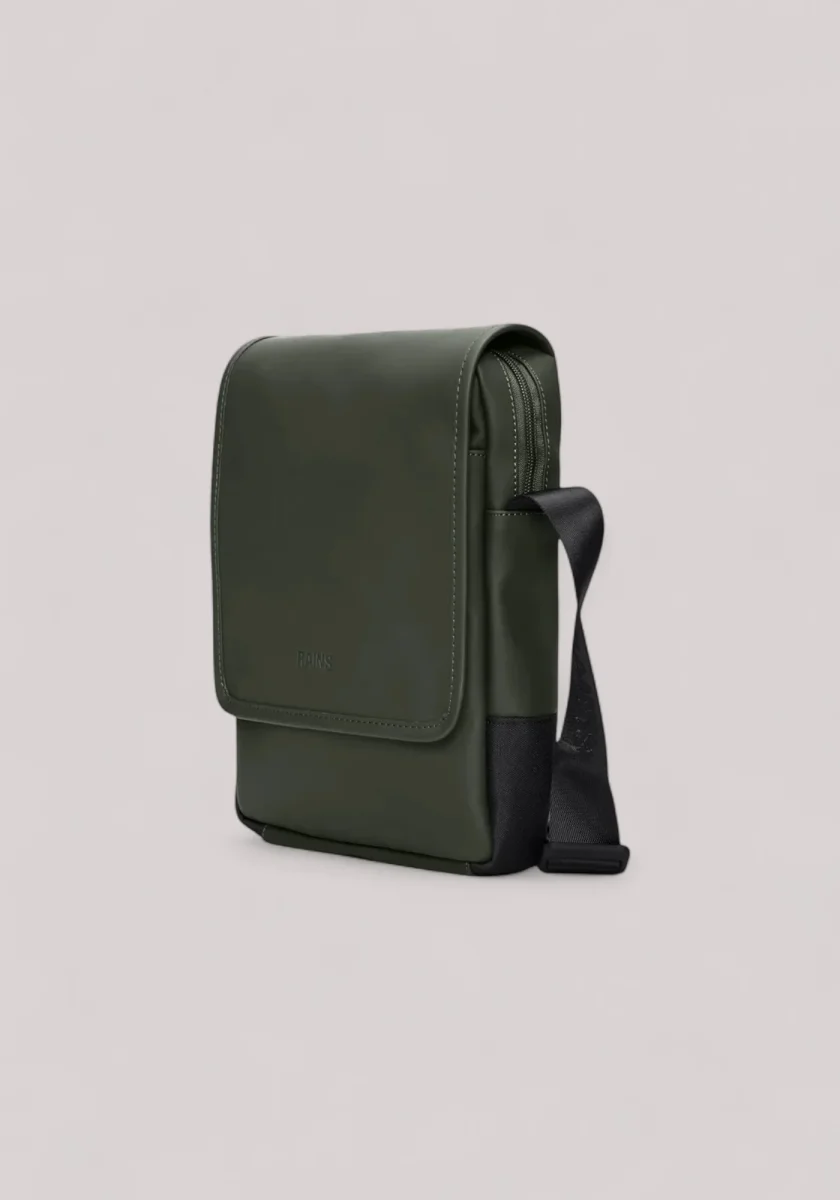 La Trail Reporter Bag è realizzata nell’iconico tessuto PU di Rains, progettato per essere robusto, duraturo e piacevole al tatto.