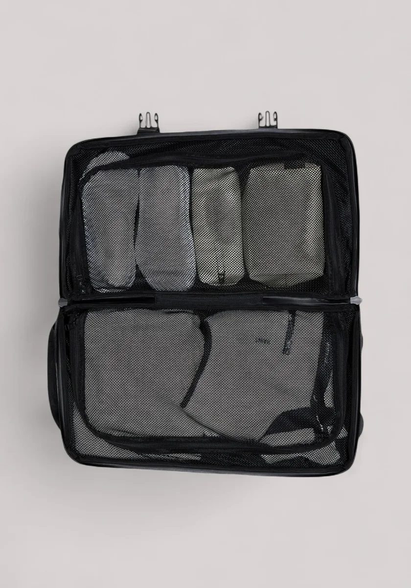 La Texel Cabin Bag è un trolley pronto per viaggiare, che rispetta le dimensioni massime per il bagaglio a mano* per la maggior parte delle compagnie aeree. La valigia bifold presenta due scomparti principali, uno con fasce elastiche trasversali ed entrambi con chiusure in mesh.
