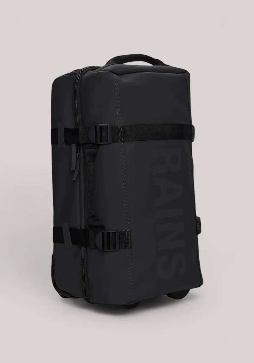 La Texel Cabin Bag è l’interpretazione di Rains del trolley da viaggio, qui nelle dimensioni da bagaglio a mano. La borsa è realizzata in tessuto PU impermeabile, progettato per respingere l’acqua.
