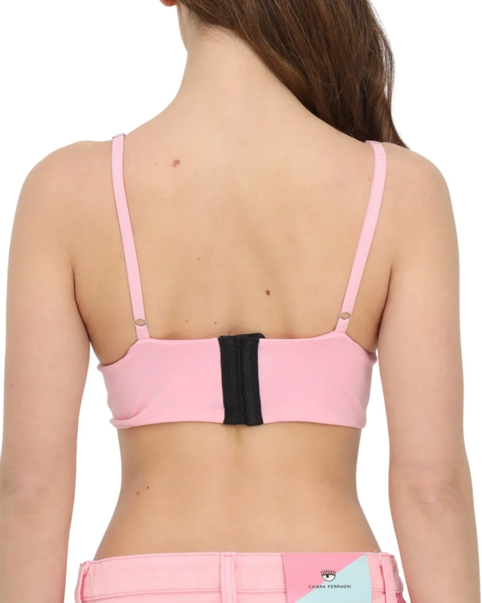 Bralette per donna in cotone by Chiara Ferragni, decorato con l’iconica stampa Eye-Star, caratteristica del brand.