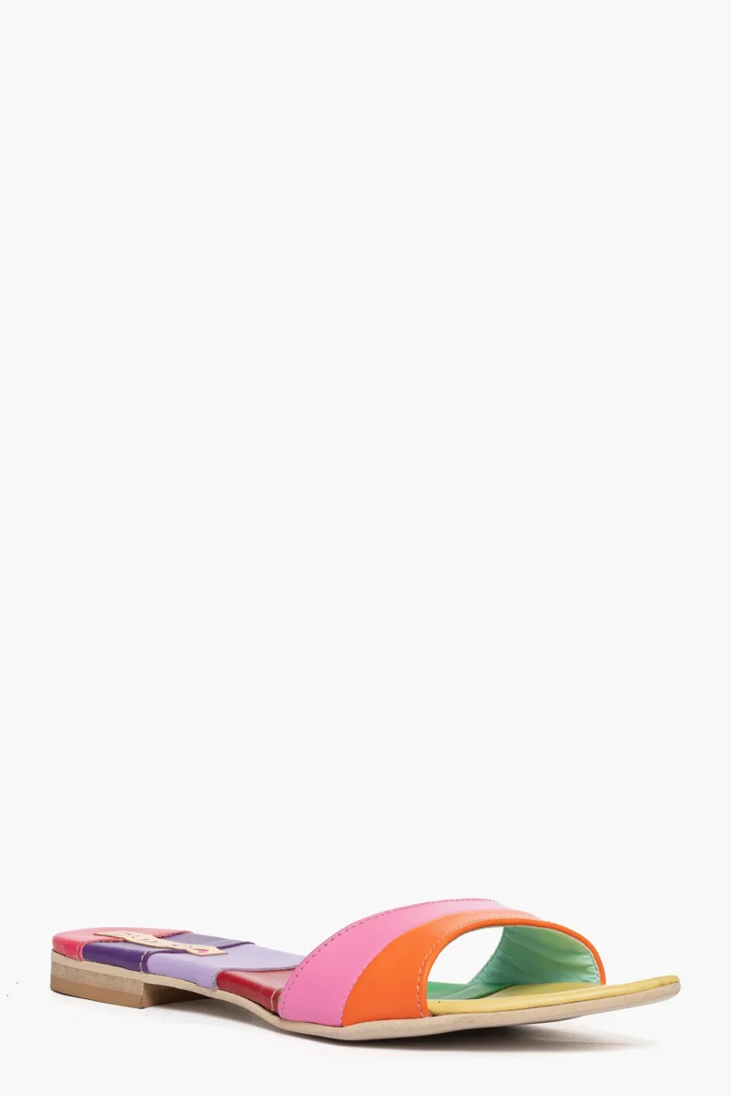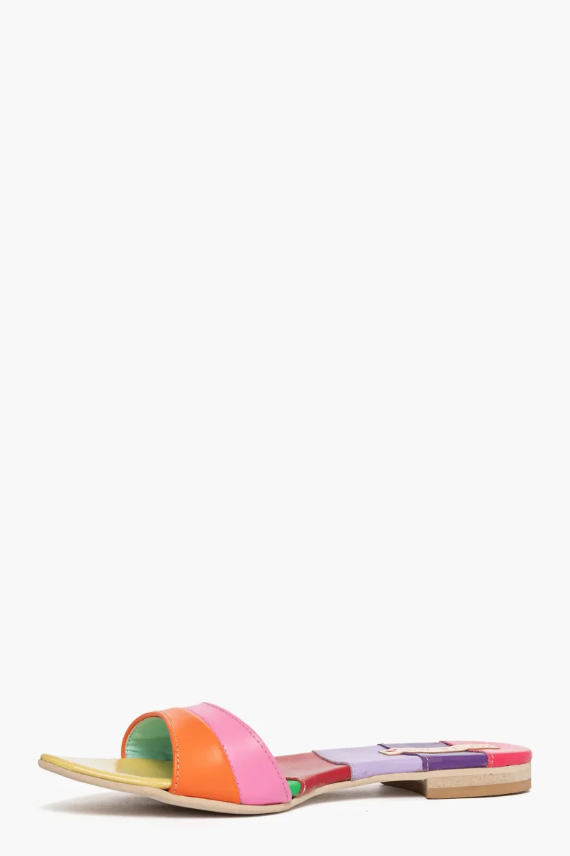 Ciabatta in pelle multicolore, interni in similpelle, punta in avanti, suola nel colore neutro, 2. Calzano regolari, calzature artigianali, made in Italy.