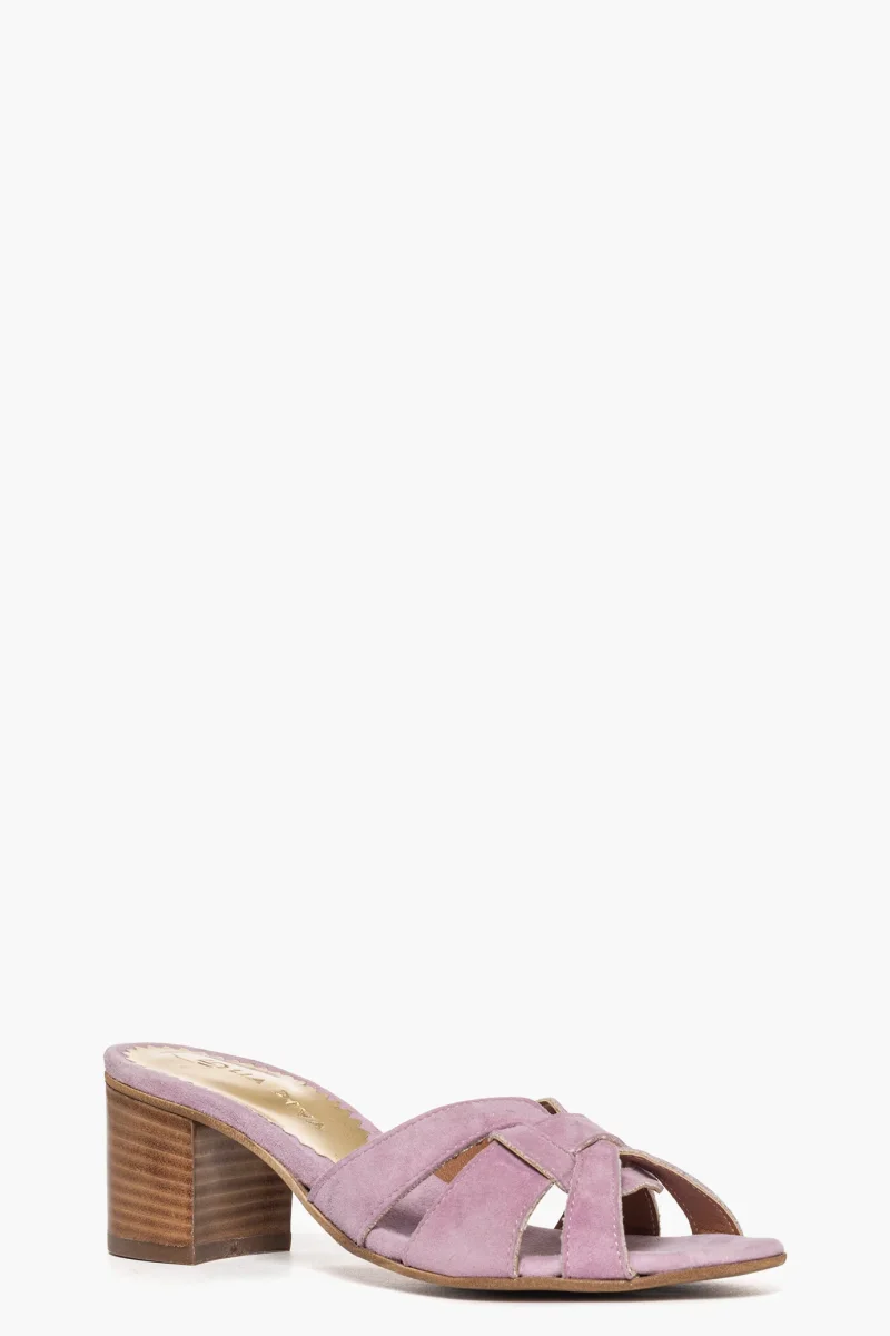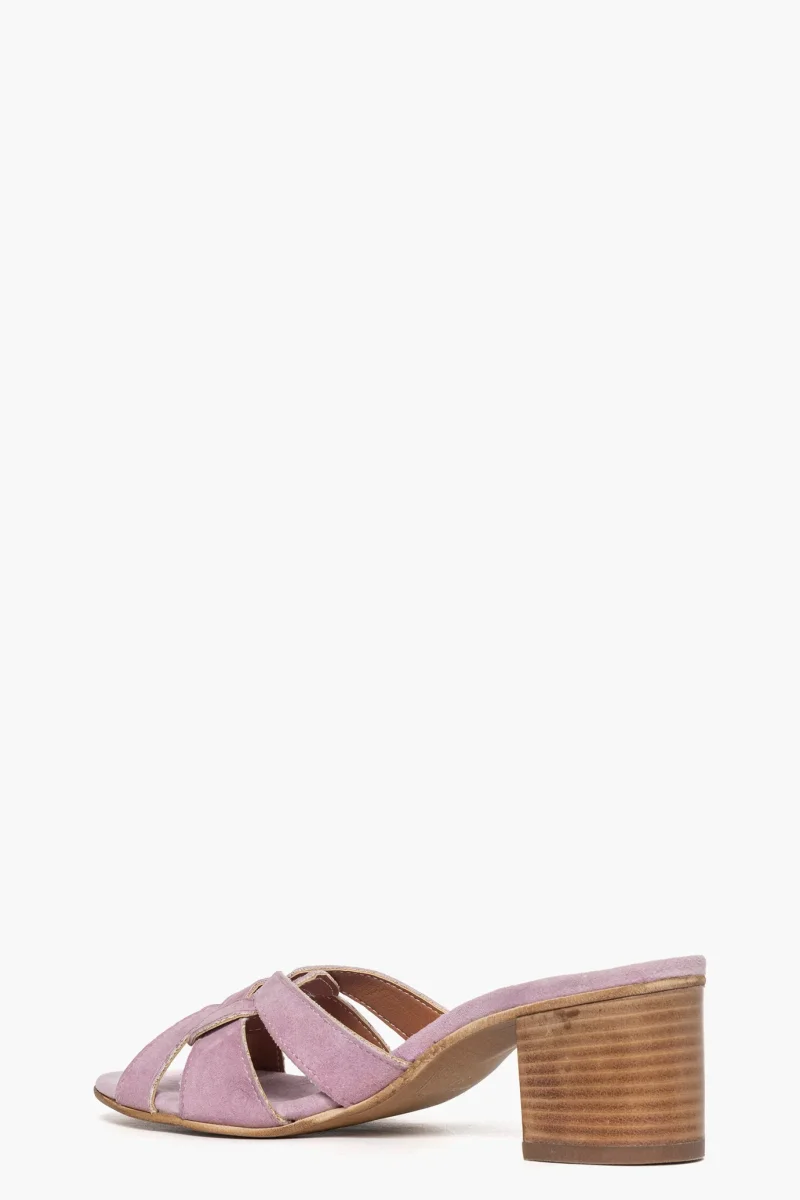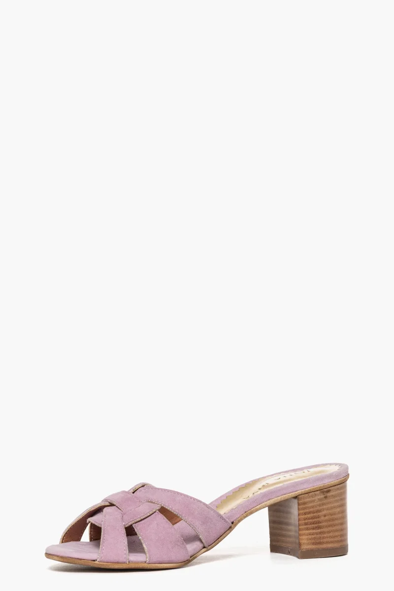 Ciabatta in camoscio lilla con sottopiede in camoscio lilla, interni in similpelle, calzano giuste, per chi ha la mezza misura consigliamo un numero in più, tacco 5 cm. Calzature realizzate artigianalmente, rigorosamente made in Italy.