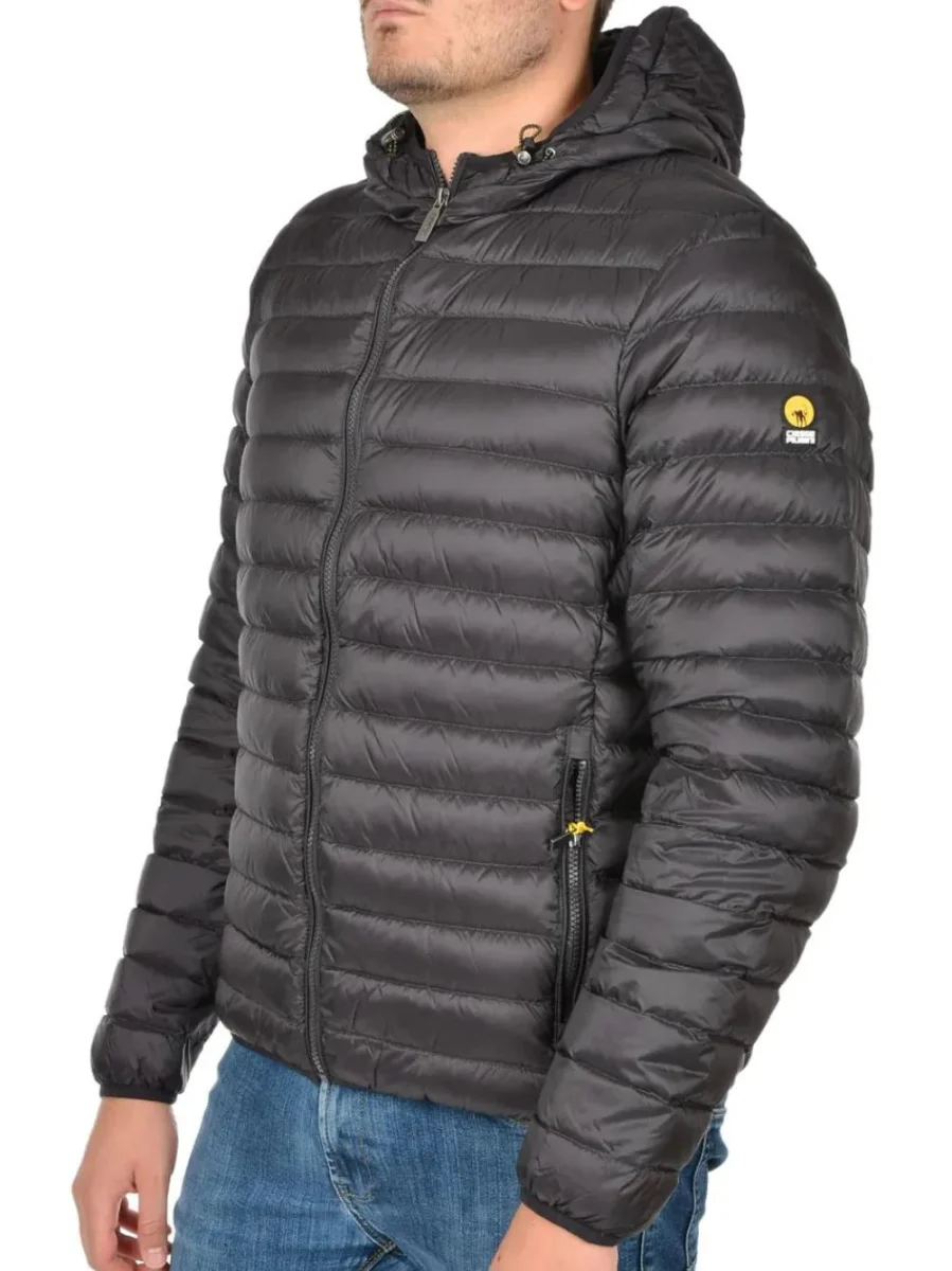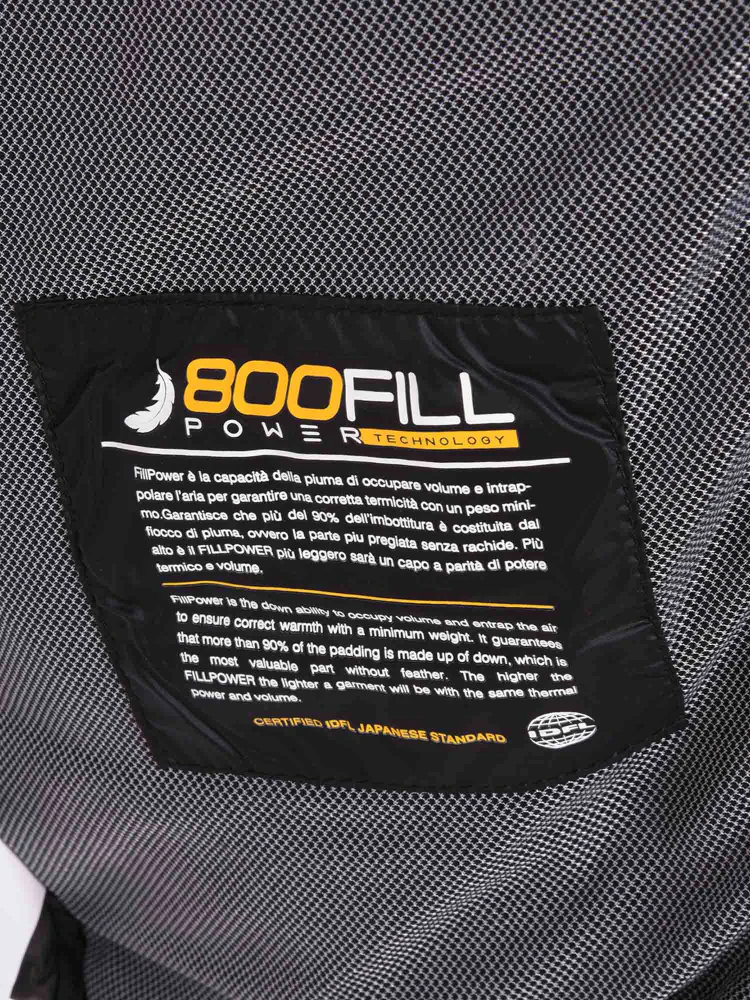 Piumino con cappuccio, realizzato nella variante nylon lucido, imbottito in vera piuma 800 Fill Power.