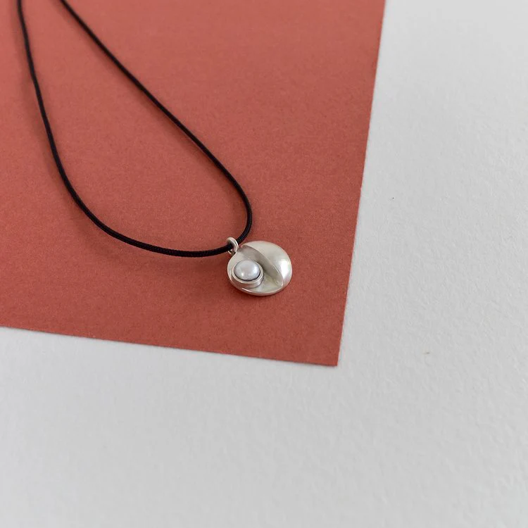 Un ciondolo minimal con perla e cordino di lunghezza regolabile. Realizzato in argento sterling massiccio nel laboratorio Meet The Cat ad Atene. Versione argento: argento massiccio (925). Versione in oro: argento massiccio placcato oro 24 carati. Cavo regolabile da 70 cm. Perla d’acqua dolce coltivata.