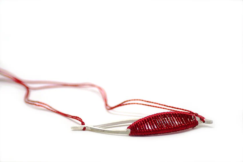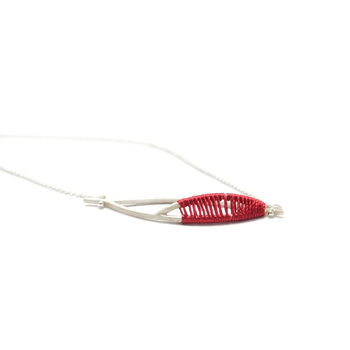 Una collana con filo dal design particolare, combinando l’argento e il filo di seta. È disponibile nelle varianti argento e argento placcato oro, color azzurro o rosso e con catenella in argento o filo di seta. Scegli la tua versione preferita!