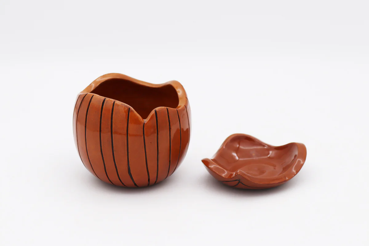 Vaso multiuso color terracotta. Contenitore con coperchio in ceramica artigianale greca. Può essere utilizzato come zuccheriera, saliera o per spezie da cucina, porta caramelle ma anche come portagioie e piccoli oggetti. Poiché i prodotti sono realizzati a mano, le loro dimensioni sono indicative e possono differire leggermente da quelle menzionate.