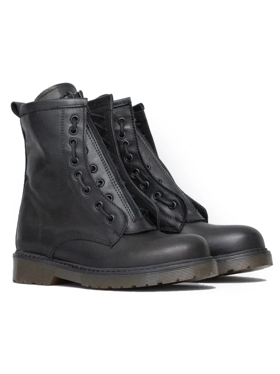Anfibio made in italy allaciato in pelle con suola trasparente. Zip e allacciatura su fronte. Tacco 3 cm e gambale 15 cm.