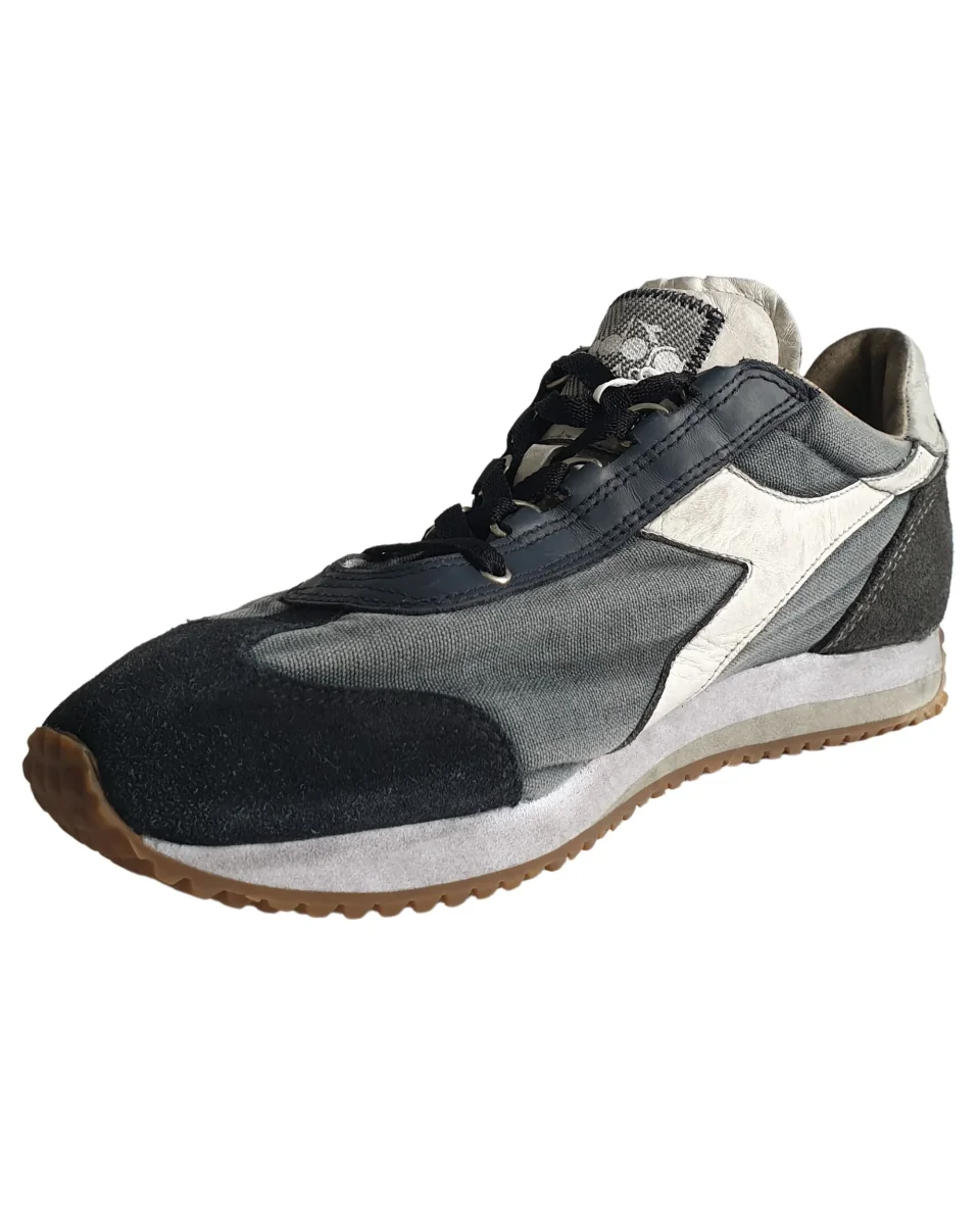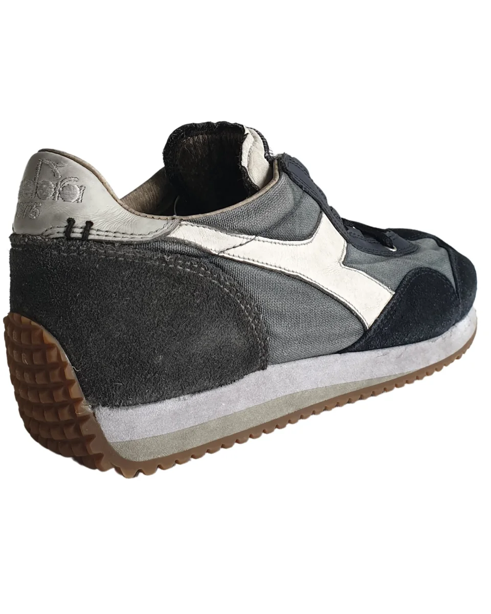 Sneaker Diadora Art.174736 60062: Equipe H dirty stone wash evo è la scarpa made in Italy unisex con tomaia con effetto stone washed in pigskin nubuk colore blu, pelle pieno fiore e canvas.