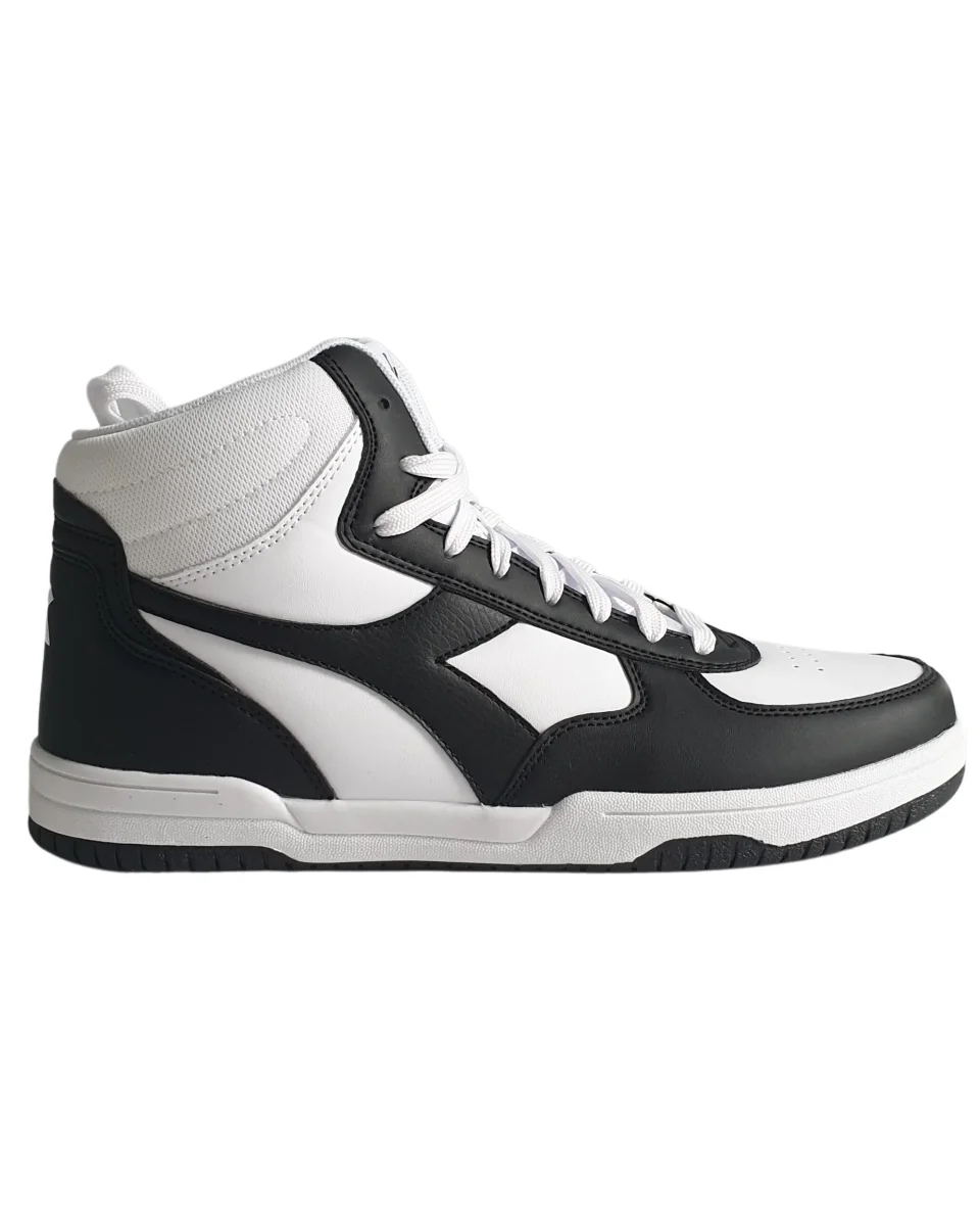 Sneaker Diadora modello Raptor Mid; scarpa Unisex con tamaia in pelle sintetica, suola in gomma e chiusura stringata.