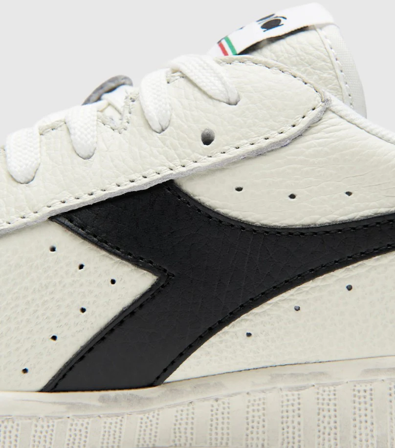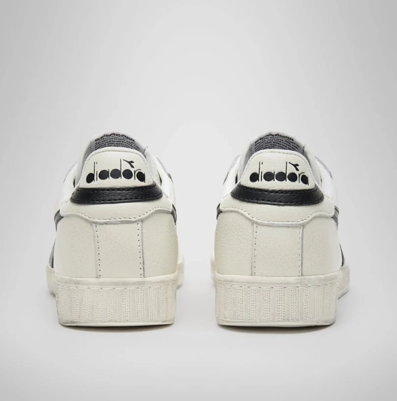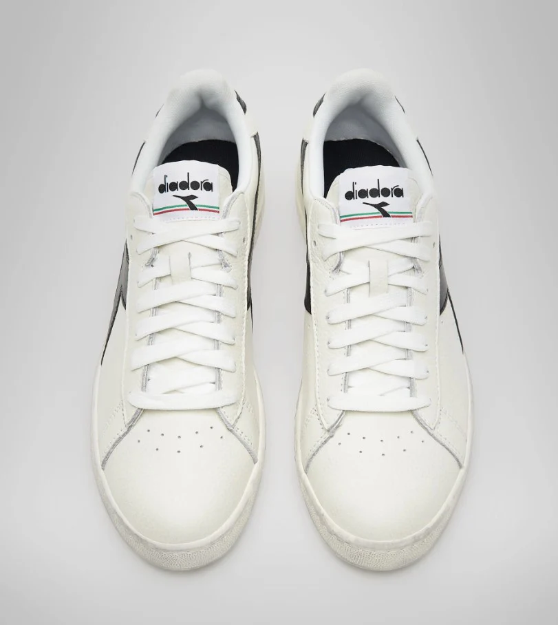 La diadora Game L Low Waxed è una scarpa da uomo con tomaia in pelle pieno fiore e ceratura waxed. Suola in gomma ad effetto vintage. Diadora ripropone uno del modelli di sneakers più iconici negli anni ’80.