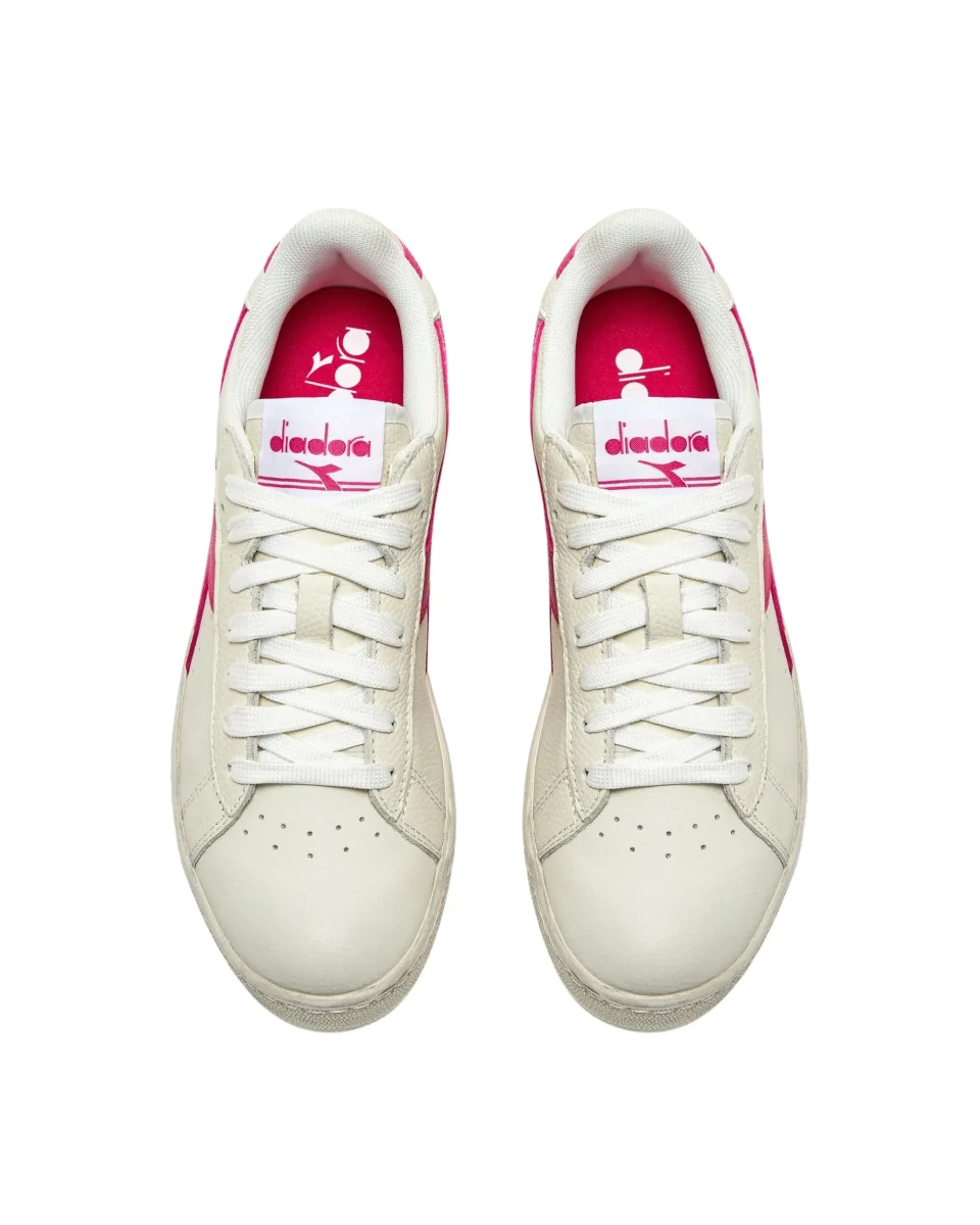 La diadora Game L Low Waxed è una scarpa da uomo con tomaia in pelle pieno fiore e ceratura waxed. Suola in gomma ad effetto vintage. Diadora ripropone uno del modelli di sneakers più iconici negli anni ’80.