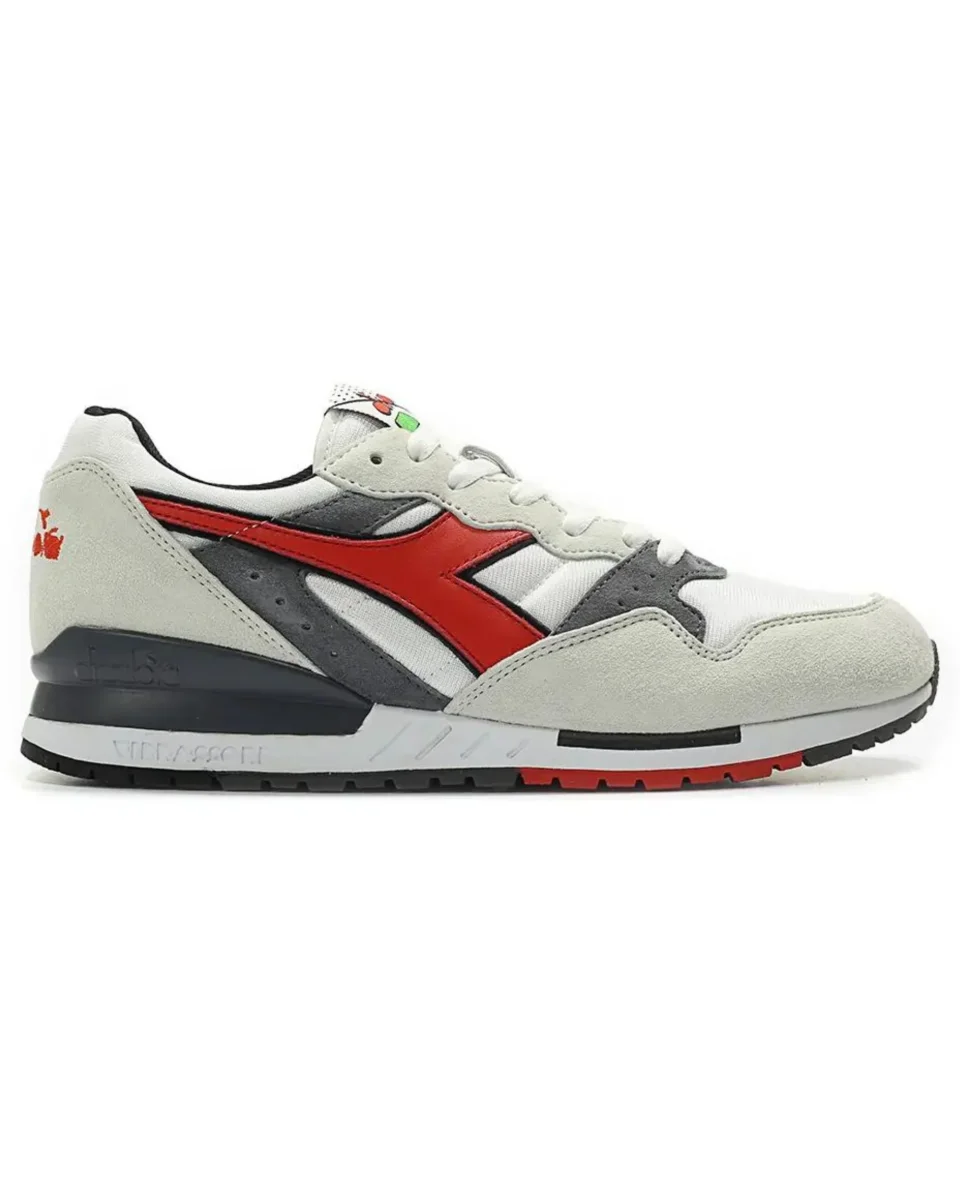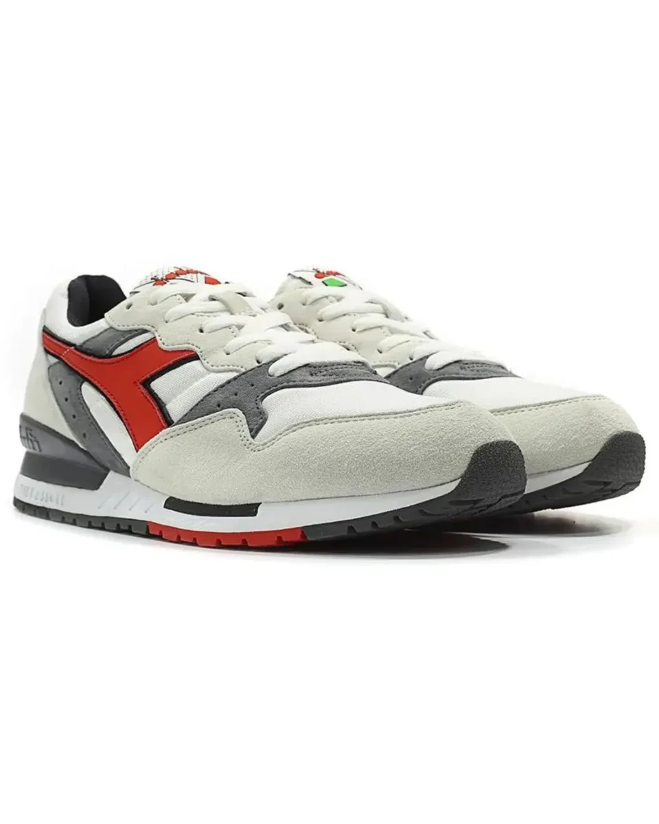 Le scarpe “Intrepid OG”, che per l’occasione presentano la colorazione del 1994: il colore principale della scarpa è il grigio chiaro, mentre i dettagli sono in grigio scuro. Il logo e la scritta “Diadora” nella parte del tallone sono in rosso acceso, mentre sulla tongue troviamo la scritta del brand in mezzo a un design tricolore.