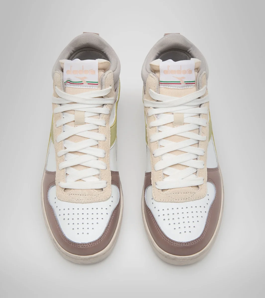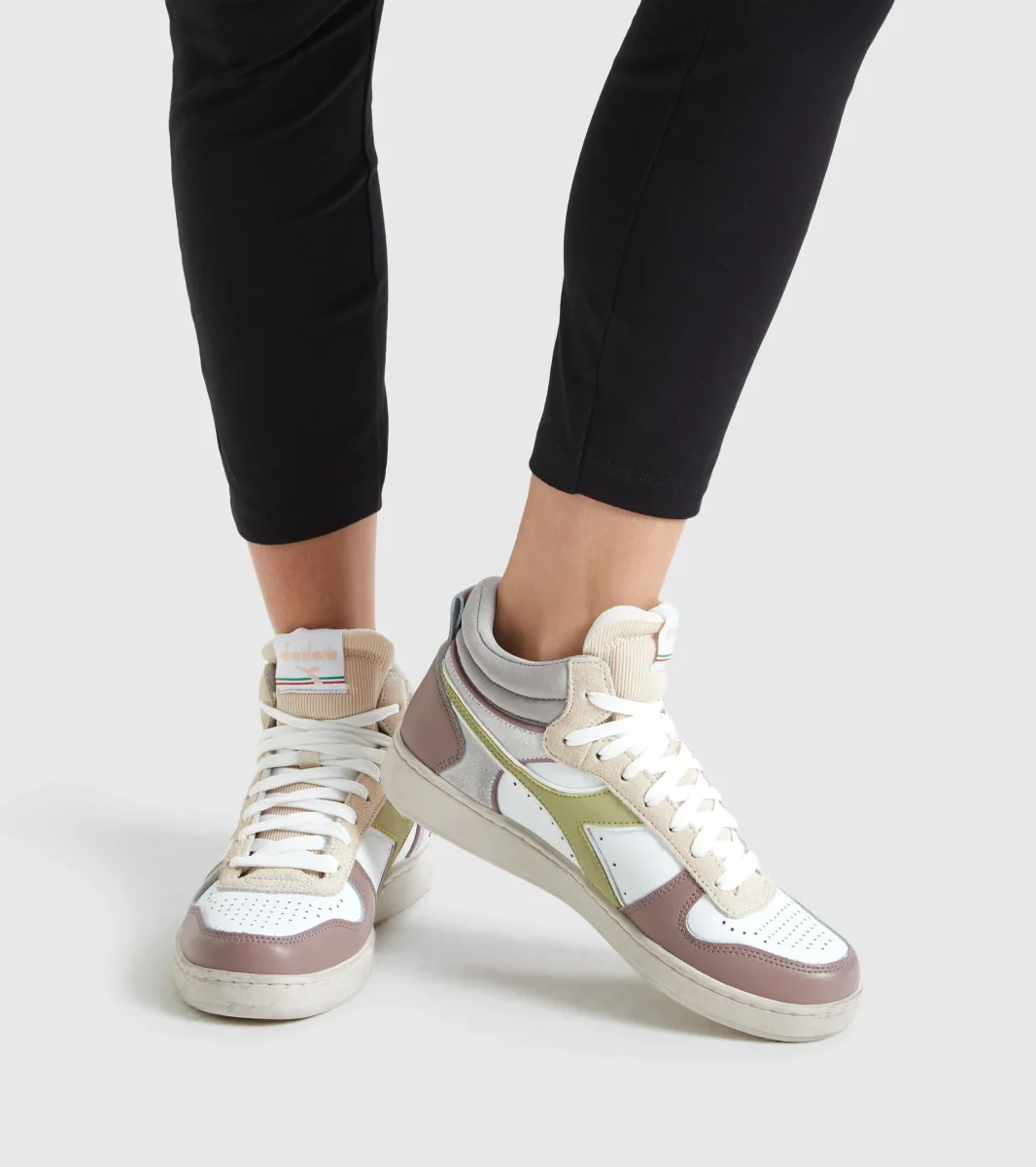 Sneaker iconica del mondo diadora, la Magic proviene direttamente dalla sezione basket del catalogo 1985. Nasce come evoluzione della Mi Basket, con tomaia in pelle di vitello, suola interna e intersuola in gommapiuma antiurto e speciale chiusura in velcro nella parte alta.