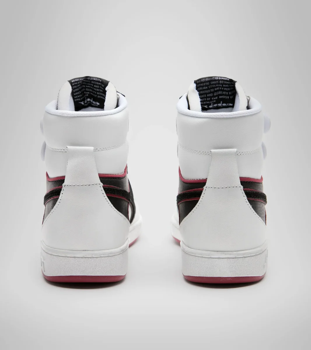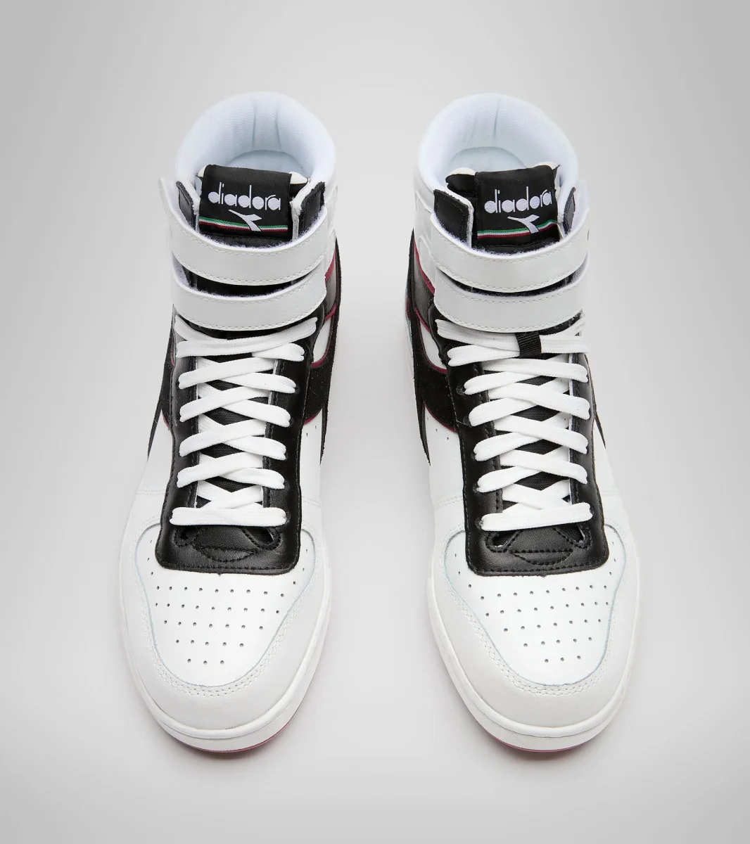 Esordio stagionale per Magic Basket, modello retro-basket proveniente dai cataloghi del 1985, pronto a dominare la scena. Magic Basket Mid Icona è la scarpa sportiva realizzata in pelle e tessuto con lo speciale trattamento wax. Chiusura a strappo e abbinamento di colori fra i diversi dettagli della calzatura.