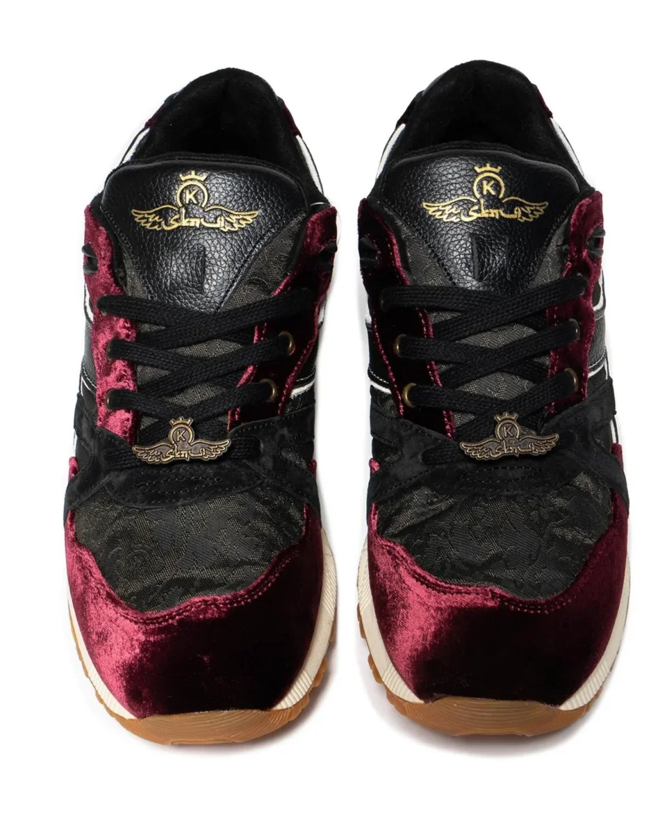Pregiato velluto rosso italiano e un motivo mimetico “Sabotage” verde jacquard, rimandano così a tutta la complessità di quel territorio. Per arricchire ulteriormente il pack, la scarpa è completata da 3 set di lacci diversi.