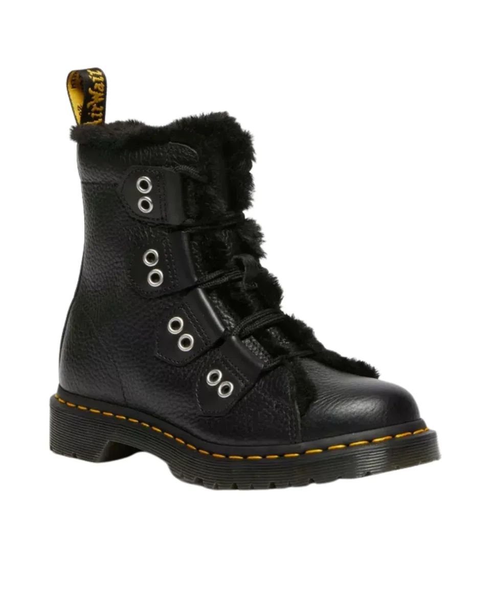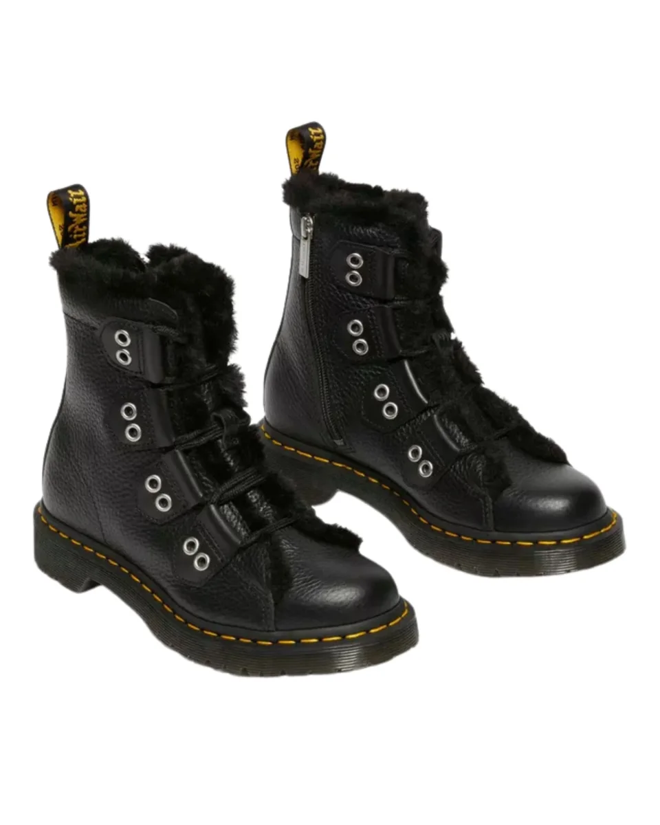 Lascia il segno, ovunque tu sia. Abbiamo rivoluzionato il nostro nuovo stivale 1460 Ghillie con un design da urlo grazie a nuovi, esagerati lacci. Realizzato in pelle Milled Nappa, lo stivale poggia su una robusta suola BEN ed è ulteriormente rinforzata dalle nostre caratteristiche cuciture gialle. L’estetica da scalatore è arricchita da lacci con punte in metallo e rivestimento in pelliccia sintetica. Un remix d’impatto per uno stivale invernale.