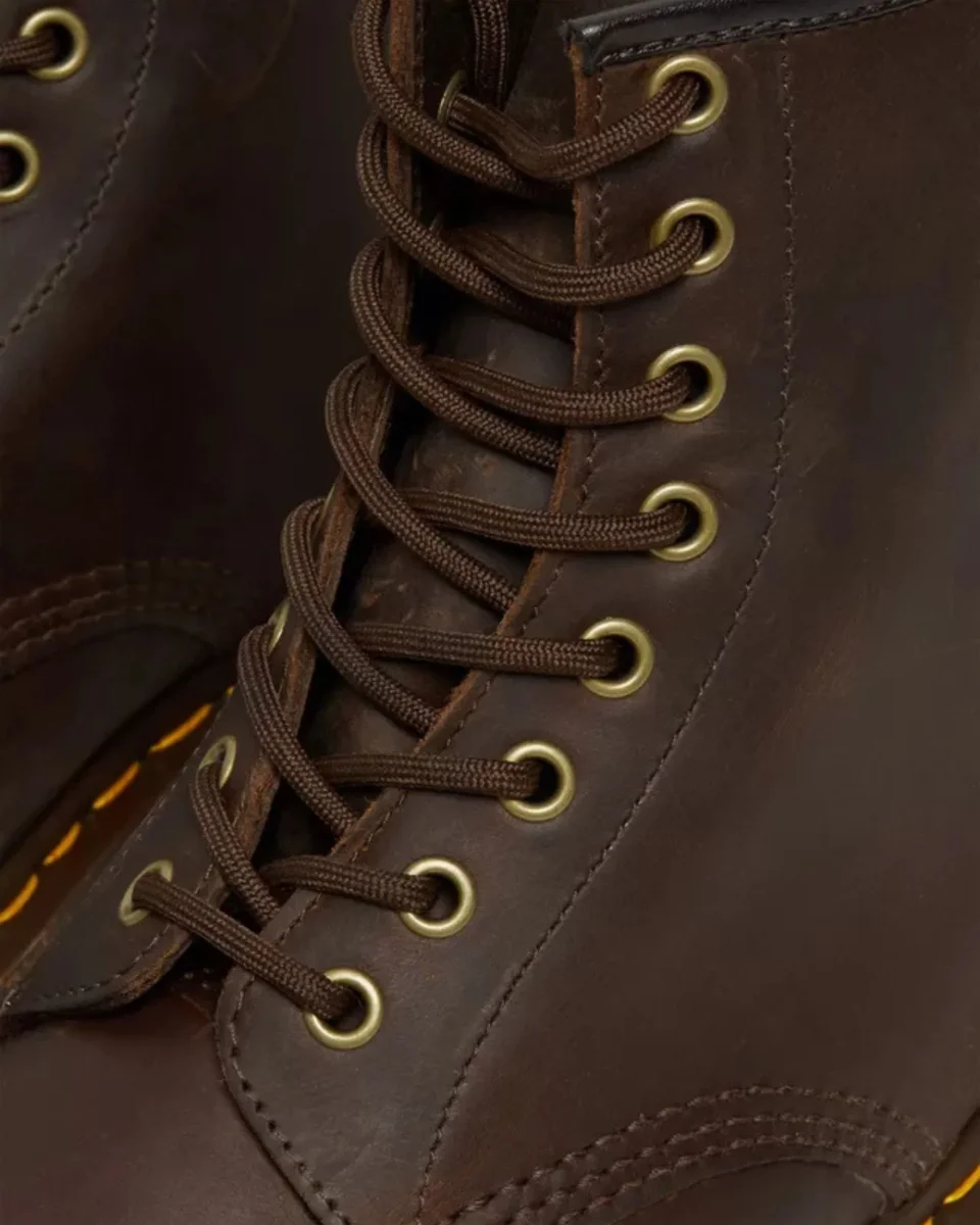 Una nuova pelle per un vecchio classico: l’iconico anfibio 1460 a 8 occhielli è realizzato in Crazy Horse, una robusta pelle dall’aspetto anticato e consumato.