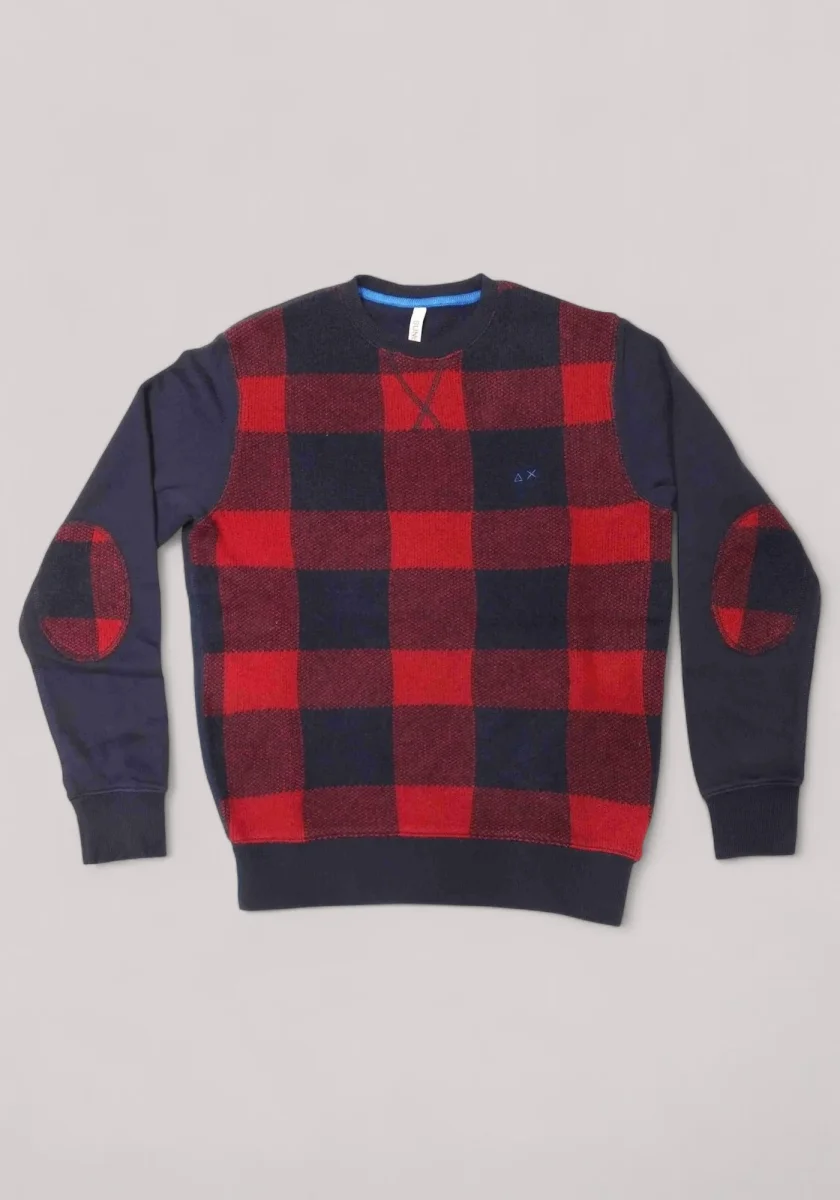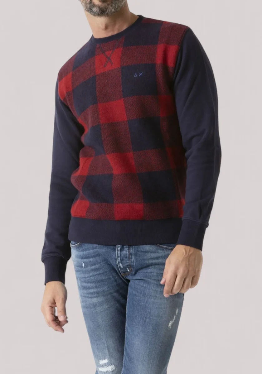 Felpa girocollo con motivo famoso in tartan rosso e blu navy vestibilità regolare