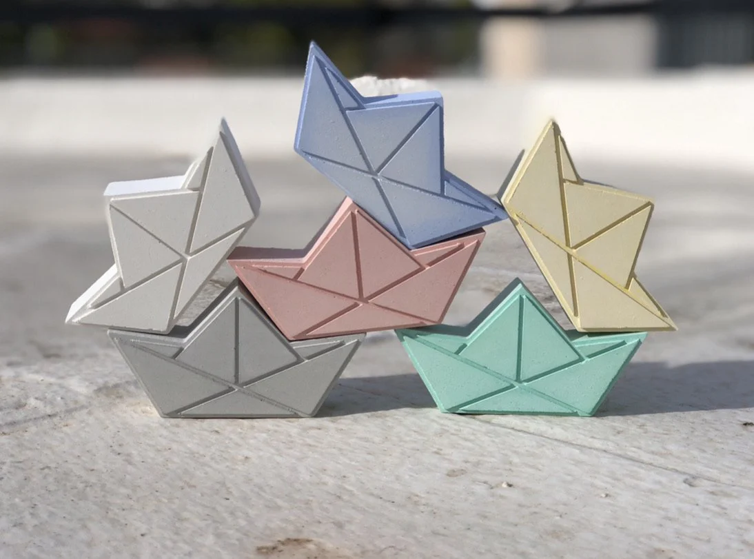 Questo originale fermacarte di design consiste in una semplice tavoletta stampata in cemento. Oltre come pratico press papier, Origami Heart può anche essere utilizzato come elemento decorativo autoportante per scrivania, libreria ecc.
