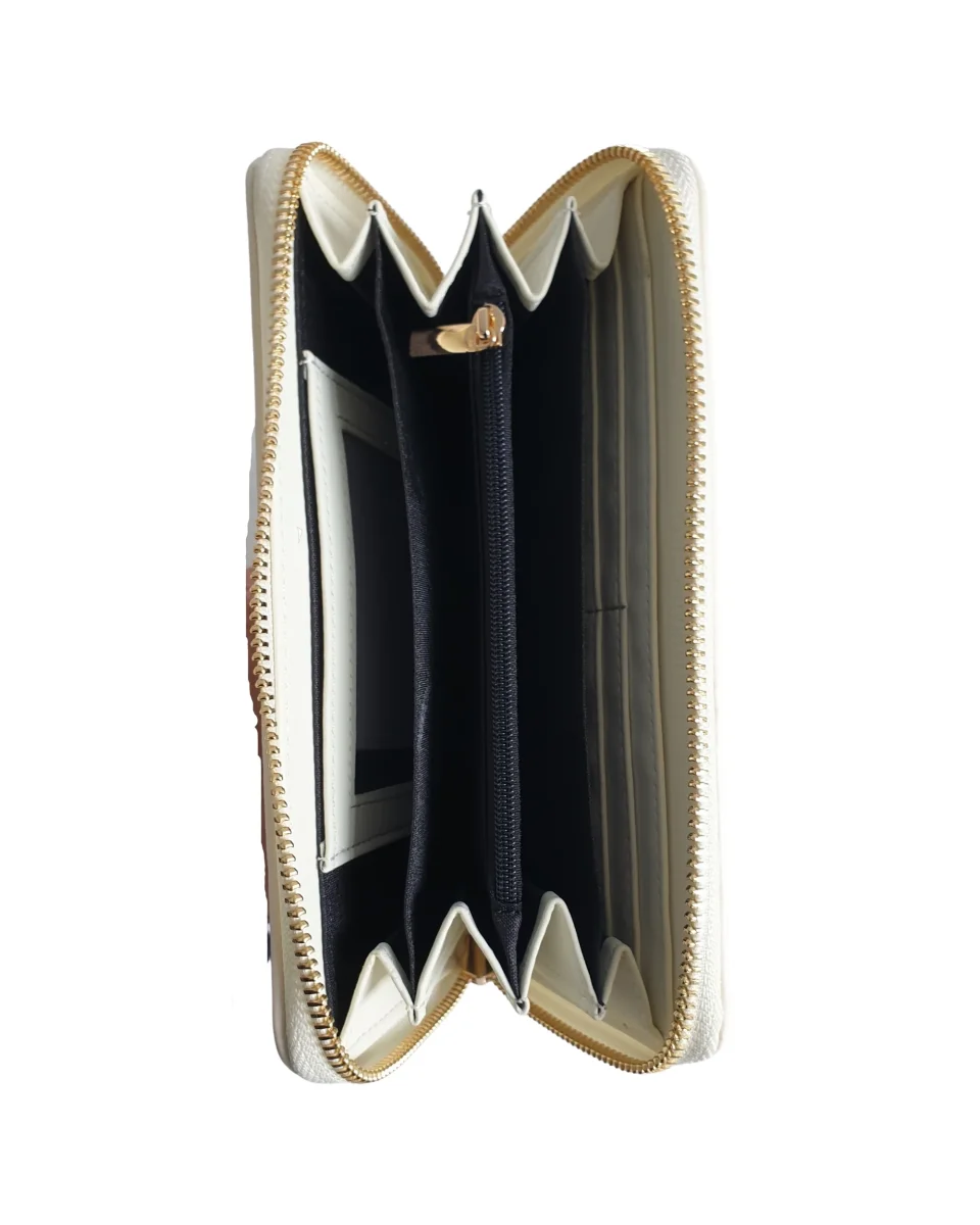 Portafoglio in ecopelle con dettagli in metallo e chiusura a lampo all-around.