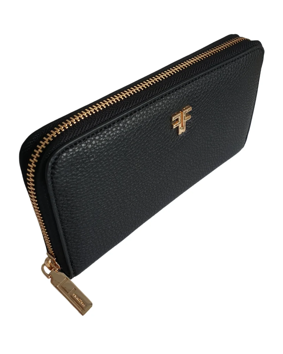 Portafoglio in ecopelle con dettagli in metallo e chiusura a lampo all-around.