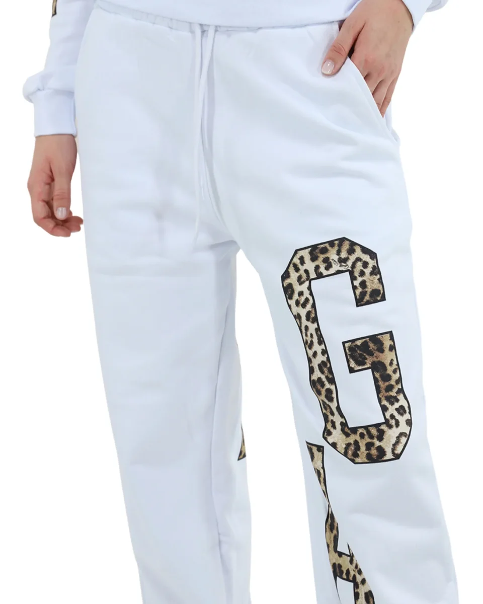 Gaelle Jogger In Felpa Logo Big Bianco Donna