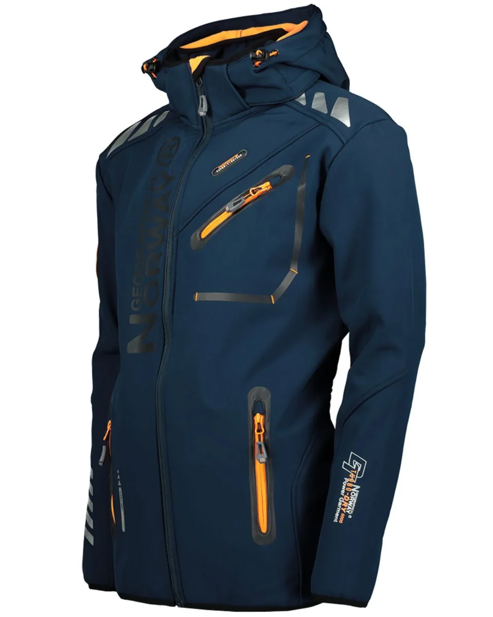 Giacca Giubbotto Jacket Uomo Geographical Norway Softshell Men Rainman cappuccio removibile removable hood Giacca con chiusura zip autunno/inverno. Protezione dal vento e dalla pioggia, rivestimento interno in tessuto felpato. Capo multifunzionale da indossare in città o montagna. Tessuto elastico adatto ad attività sportive. Maniche lunghe, 3 tasche esterne con cerniera, due tasche interne. Cappuccio removibile con chiusura sul collo in velcro. Vasta scelta di colori. Materiale esterno 100% Poliestere – interno 96% Poliestere 4% Elastane Made in China