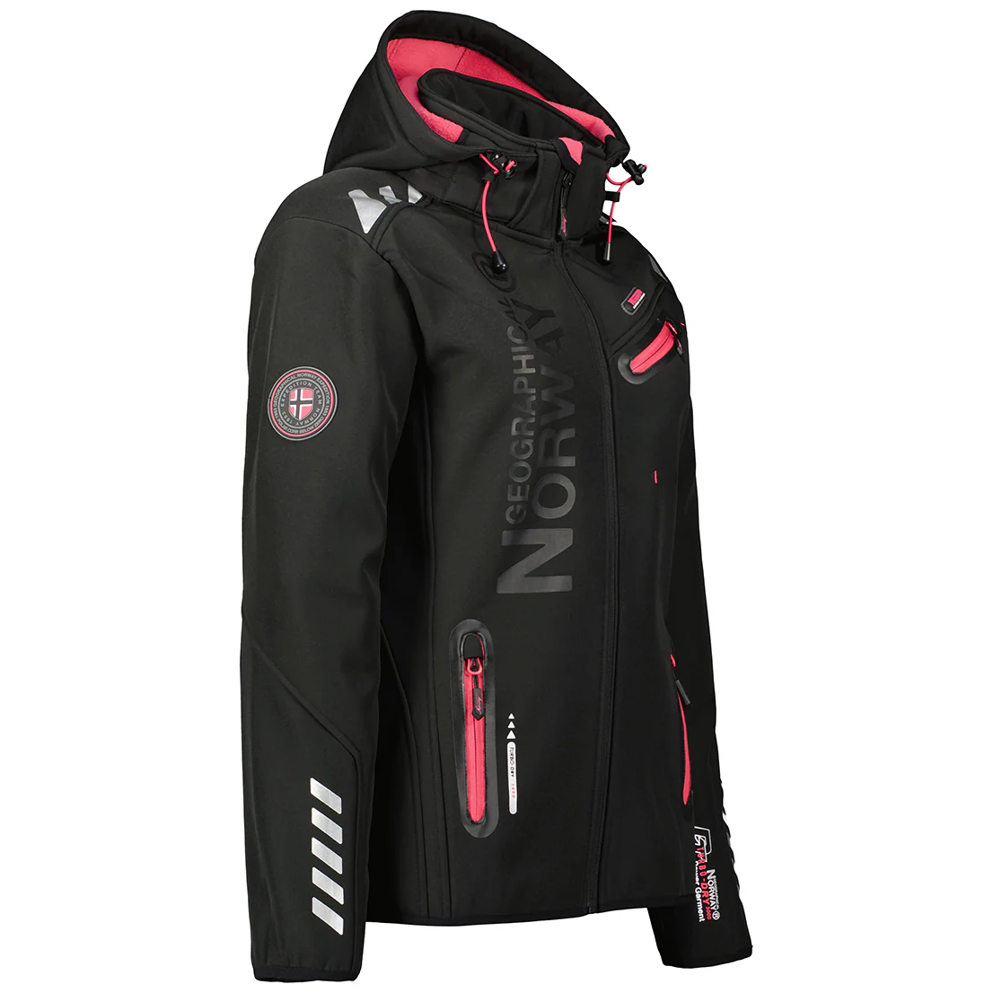 Giacca invernale softshell con cappuccio e chiusura full zip.