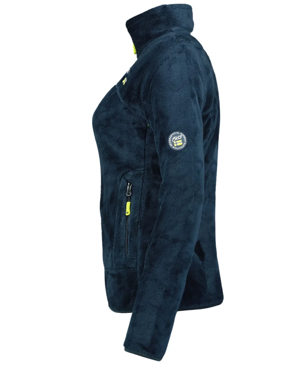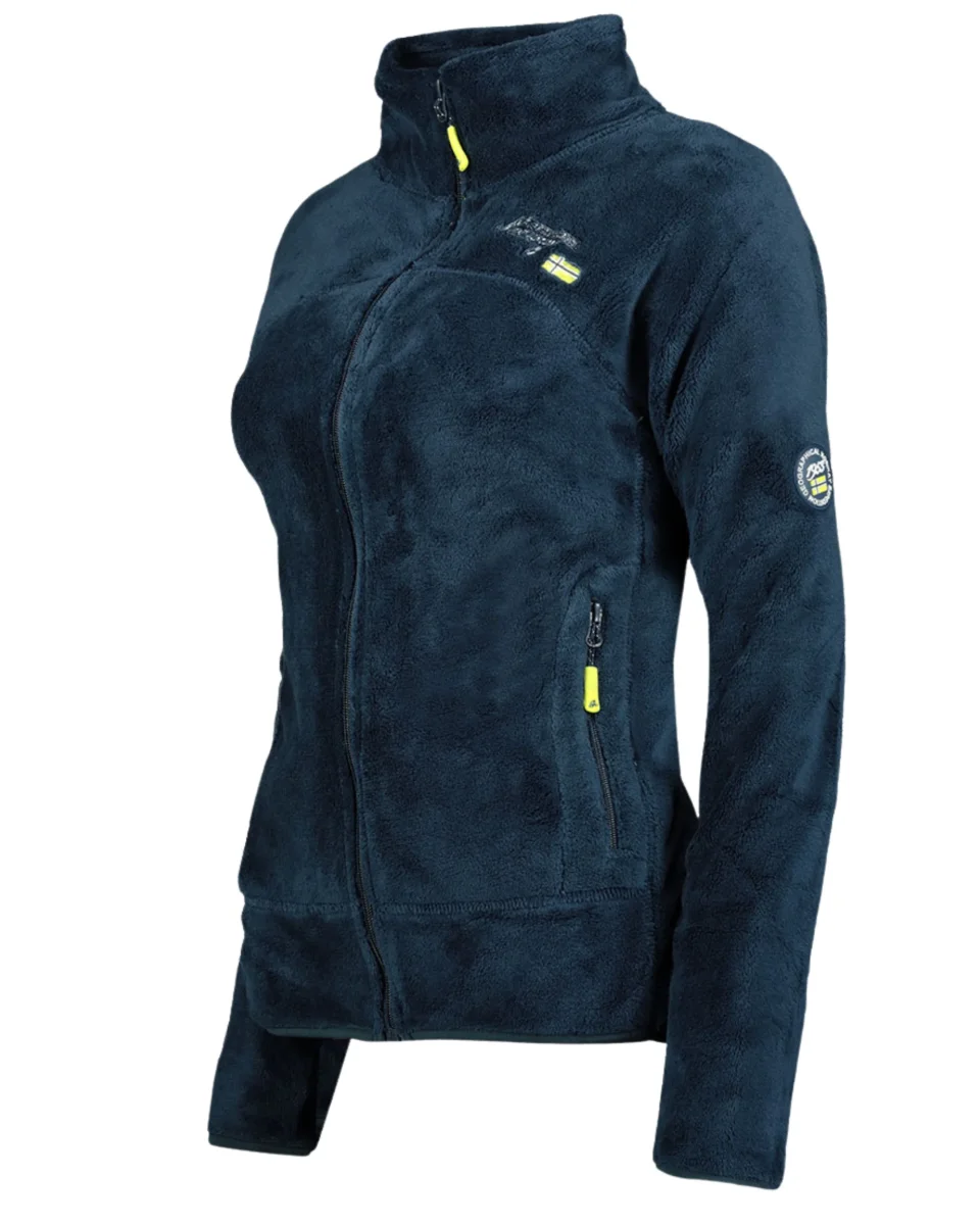 Giacca polar in pile corallo con zip centrale, due tasche laterali con zip. Ricamo sulla manica inferiore e badge in pvc sulla manica superiore.
