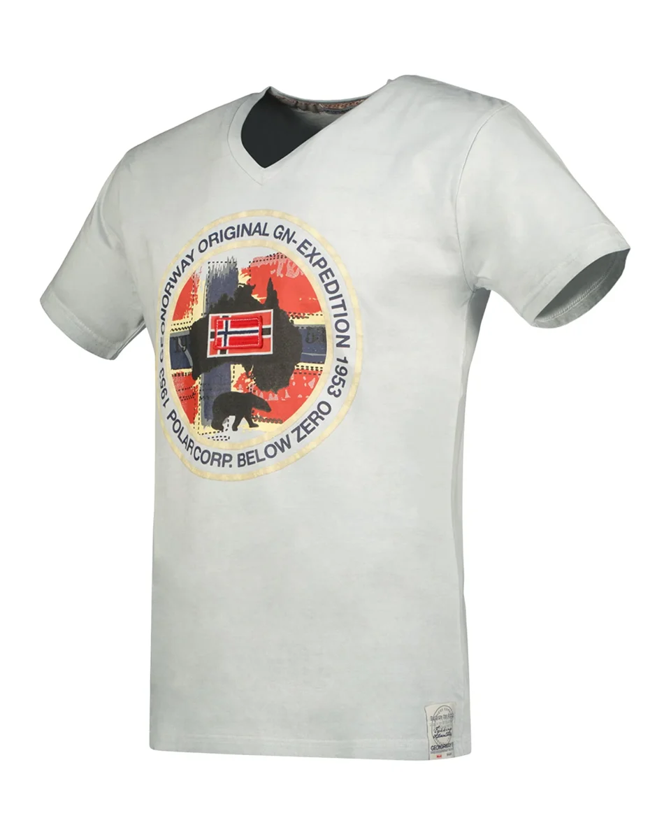 T-shirt Geographical Norway modello Jexcursion, manica corta, scollo a V, stampa design sul petto.